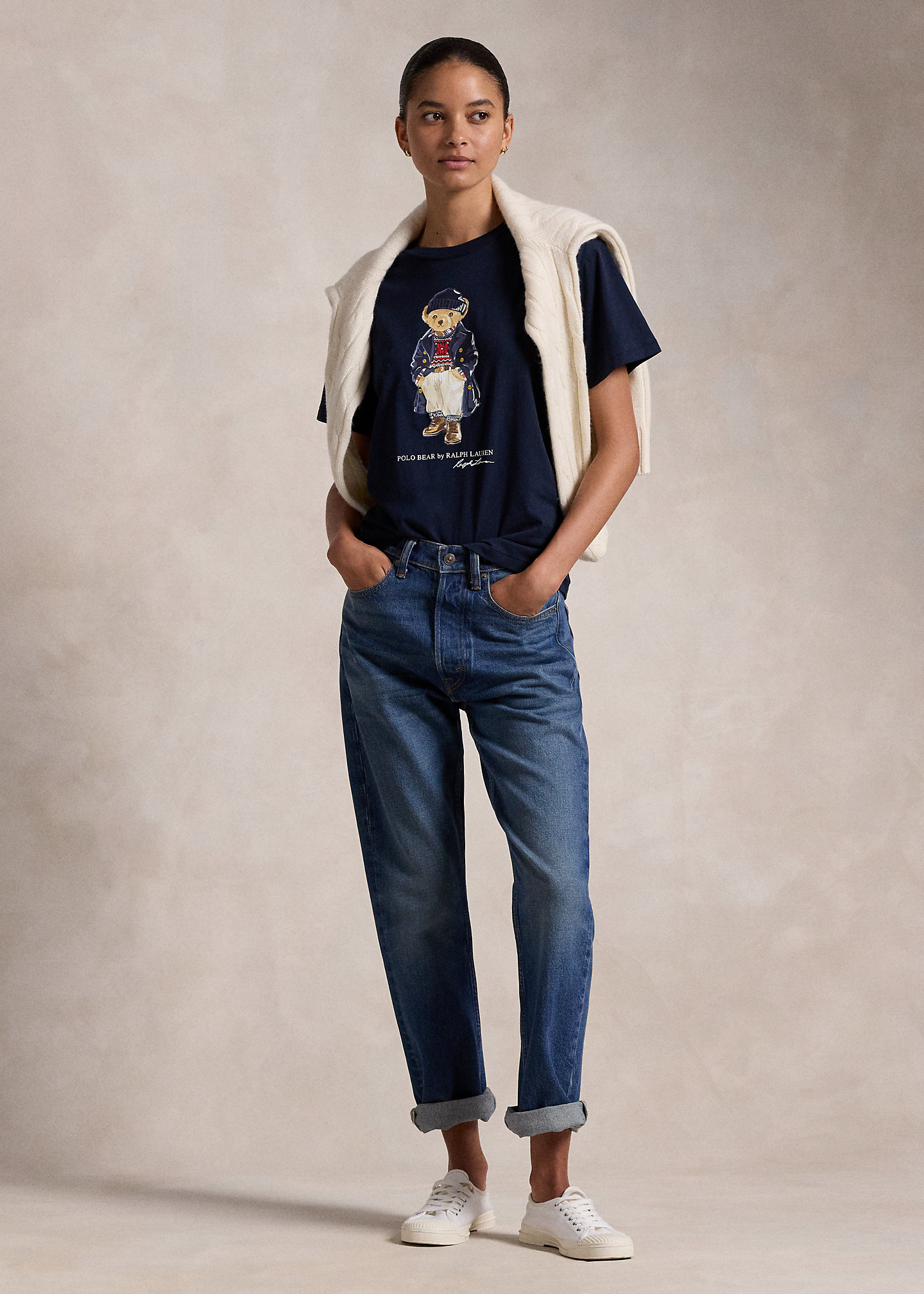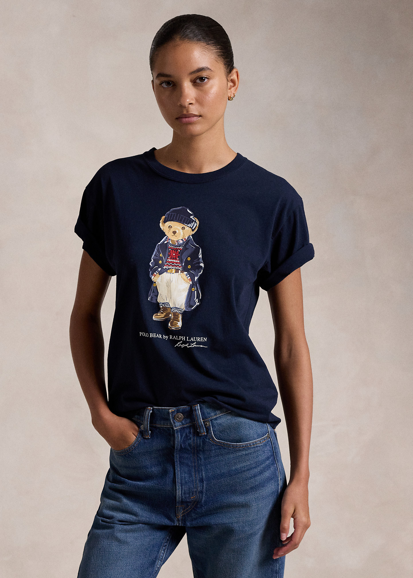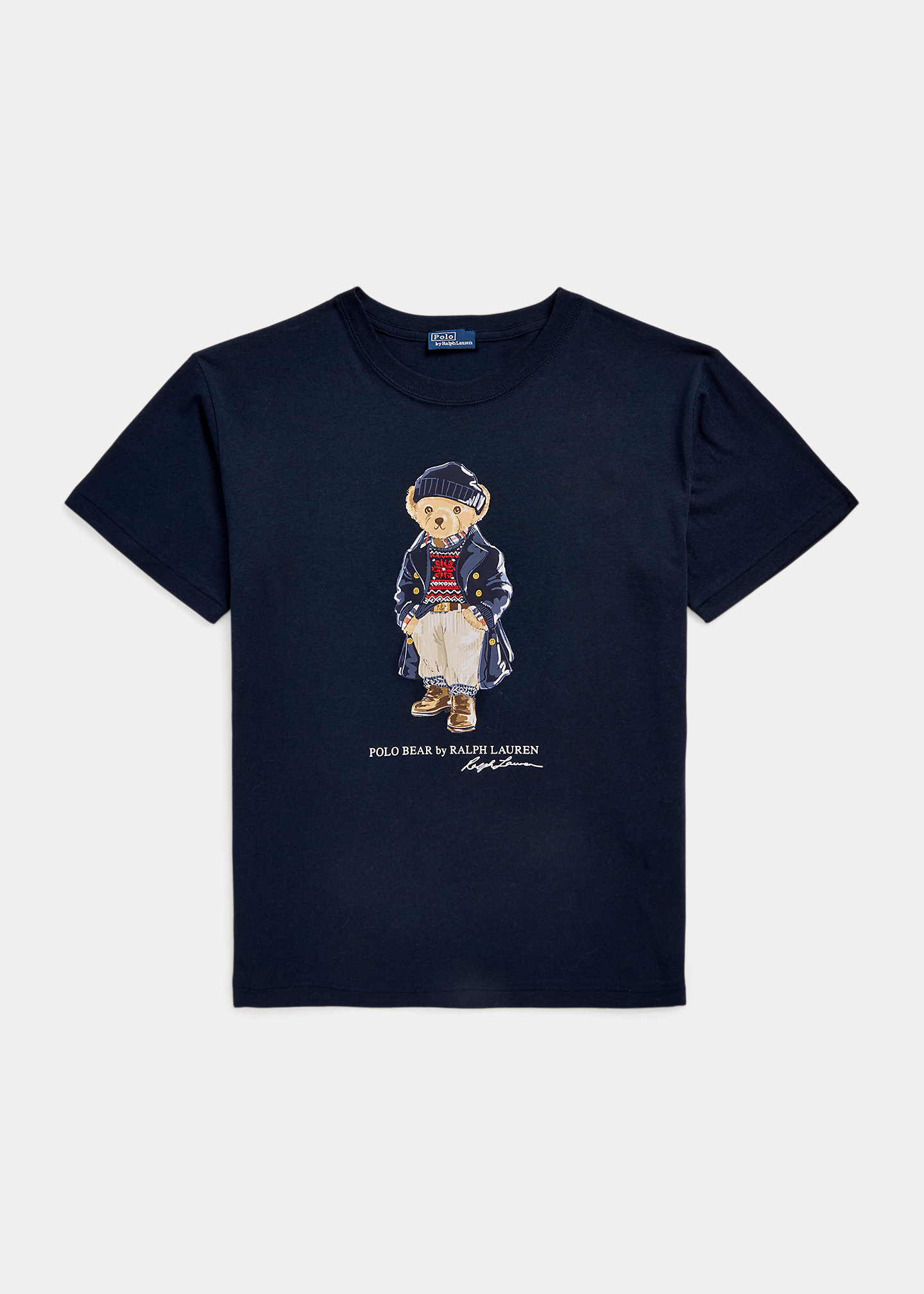 - Polo Bear, “Polo Bear by Ralph Lauren,” and script “Ralph Lauren” signature rubber-printed and embroidered at the center front.