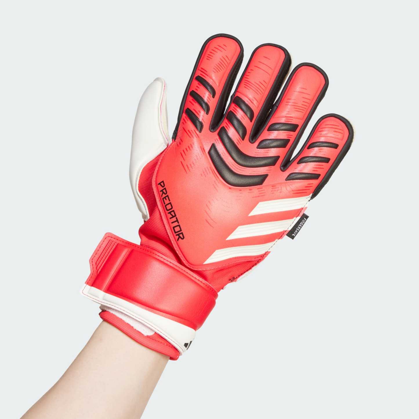 Get to the ball every time in these adidas Predator Match Fingersave goalkeeper gloves. With cushioned Soft Grip Pro latex in the palm and stiff-but-flexible spines in the fingers, they will ensure you're ready for every catch and throw. A half-wrap wrist strap helps you find a comfortable fit with the stability you need to shine between the sticks.