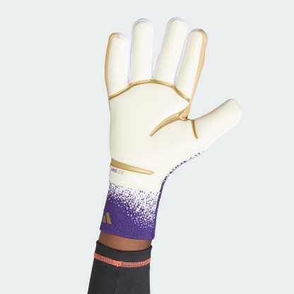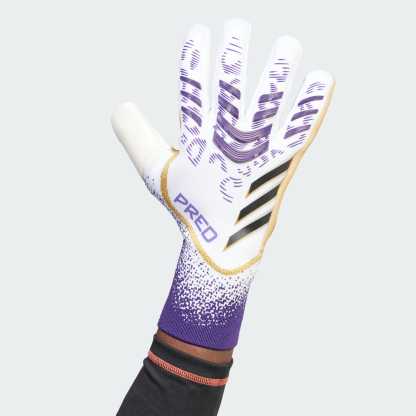Stop every shot in these adidas Predator Pro goalkeeper gloves. Engineered for standout match day performances, they employ grippy URG 2.0 latex palms and a snug, negative finger cut. Their adaptive knit backhand includes silicone elements for pinpoint punching. The strapless entry provides a rock-solid but natural-feeling fit at the wrist.