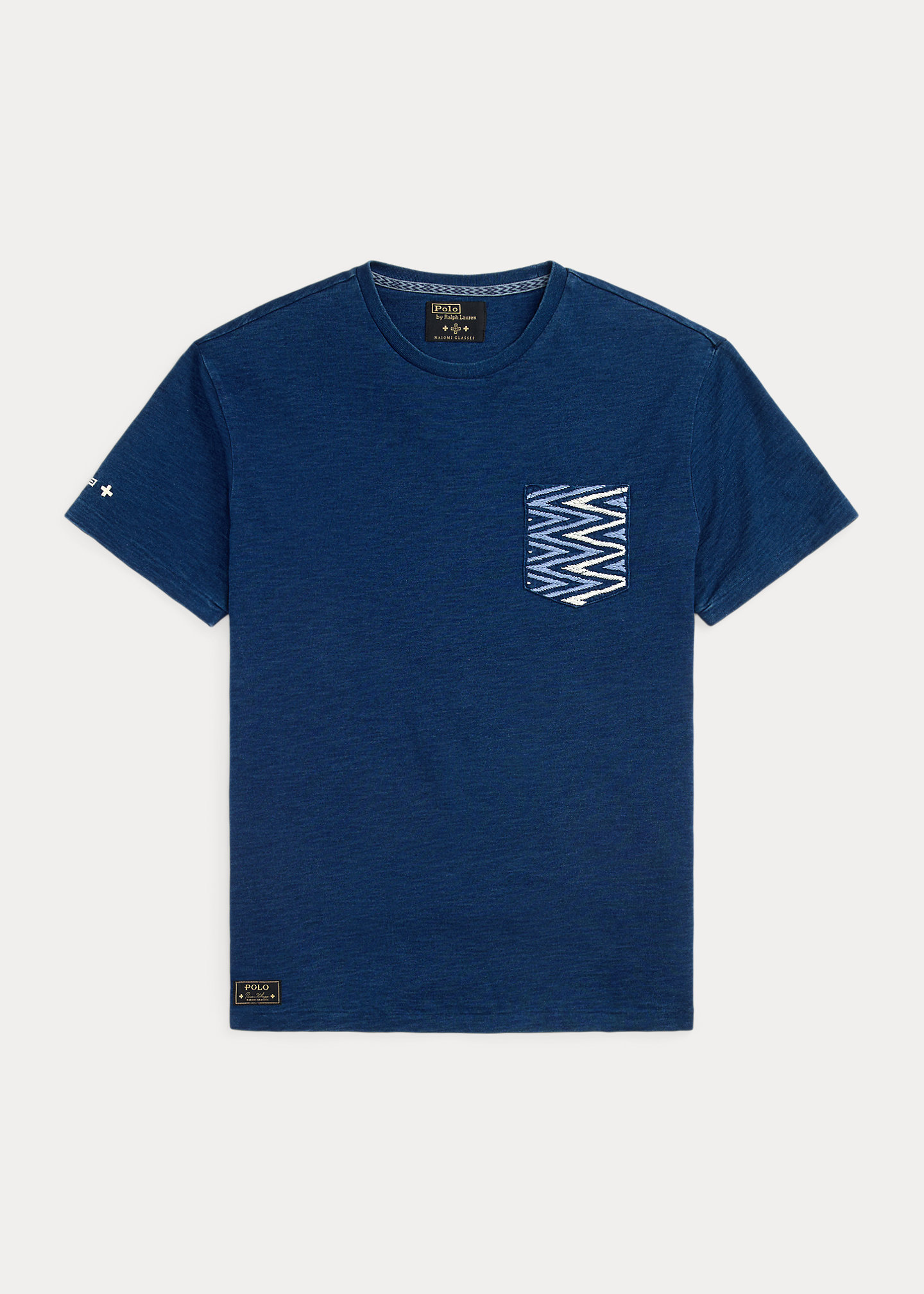 - Left chest patch pocket with wedge-weave embroidery. “Polo Naiomi Glasses” label with four-directional crosses at the right hem.