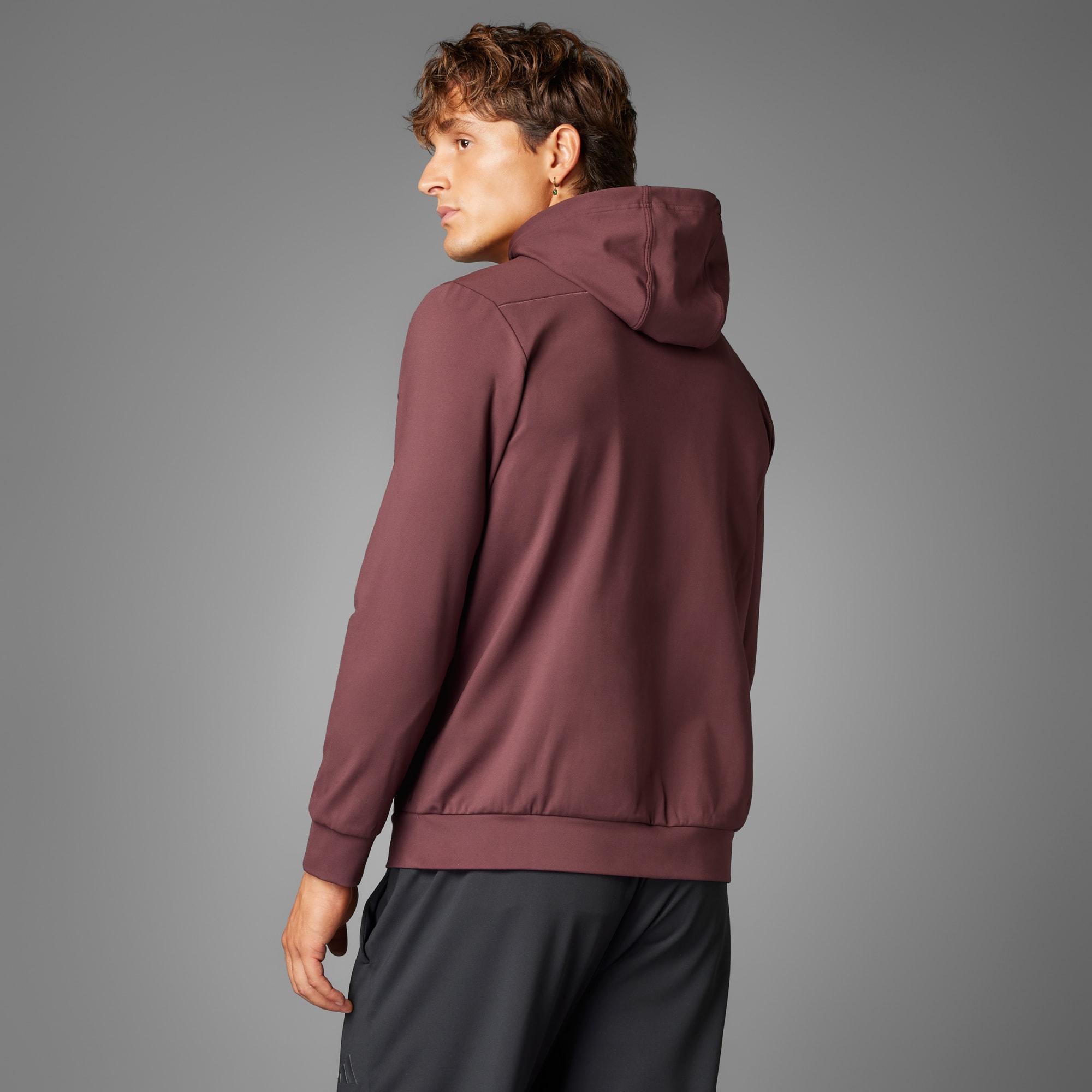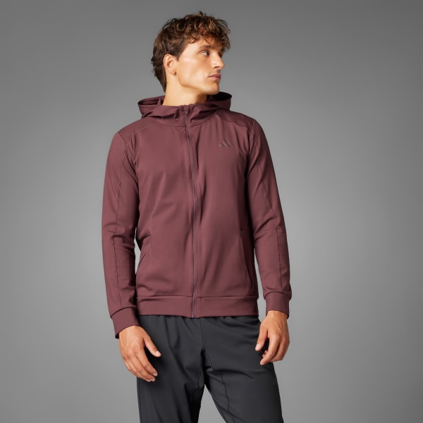 Find your flow in this adidas jacket that transitions easily from yoga class to the rest of your day. The versatile hooded top is made of soft knit fabric for comfortable movement. CLIMACOOL wicks and disperses sweat for cool, dry and distraction-free performance.CLIMACOOL helps you manage sweat with materials that wick and manage sweat quickly. Its fast-dry fibers give you a fresh-skin feel.This product is made with at least 70% recycled materials. By reusing materials that have already been created, we help to reduce waste and our reliance on finite resources and reduce the footprint of the products we make.