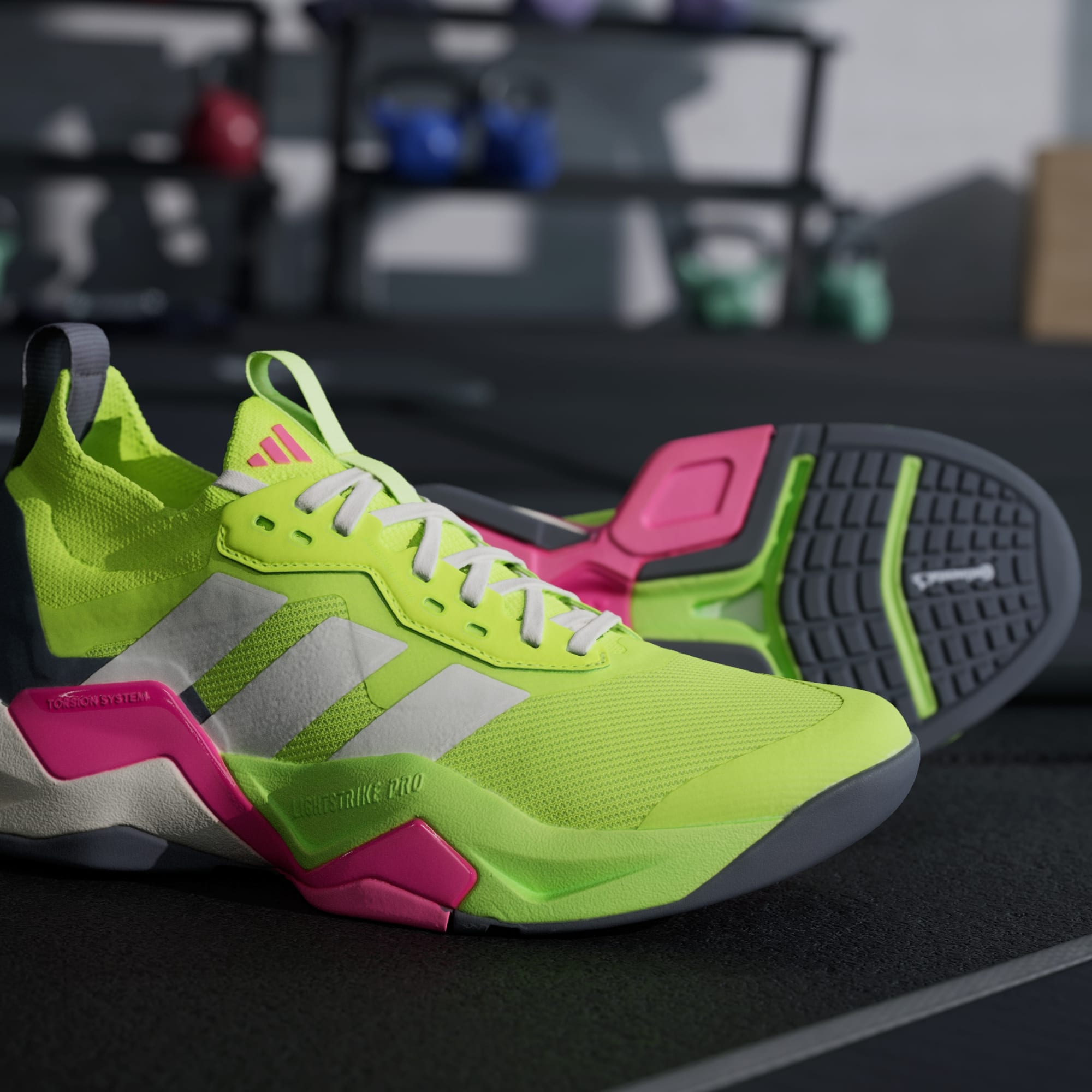 Lace up these adidas training shoes and get ready to crush your HIIT workout. They feature Lightstrike Pro cushioning for a lightweight and responsive feel. A mesh upper provides breathable support, while the Torsion System provides extra stability that keeps you comfortable and confident through a high-intensity mix of strength and cardio.This product features at least 20% recycled materials. By reusing materials that have already been created, we help to reduce waste and our reliance on finite resources and reduce the footprint of the products we make.