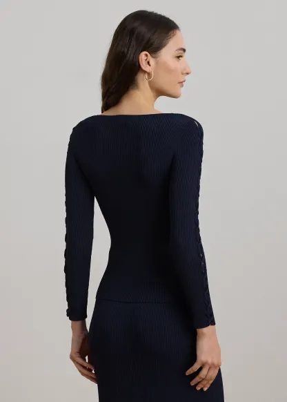Lace-up detailing at each sleeve.