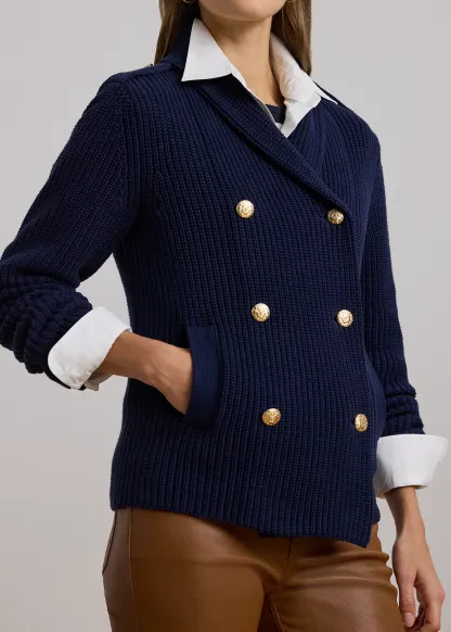 Rib-Knit Double-Breasted Sweater Jacket