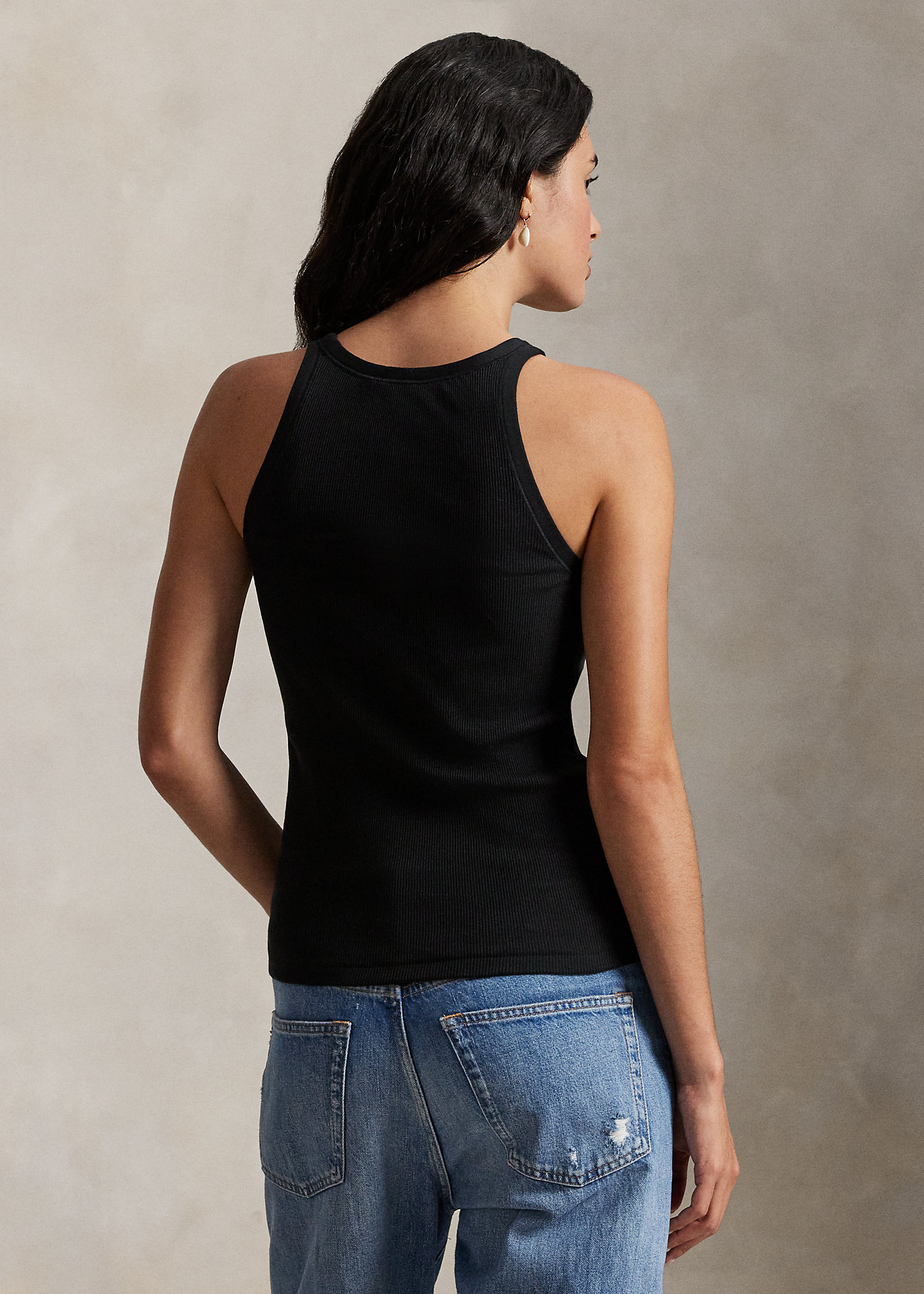 - Rounded neckline and back.