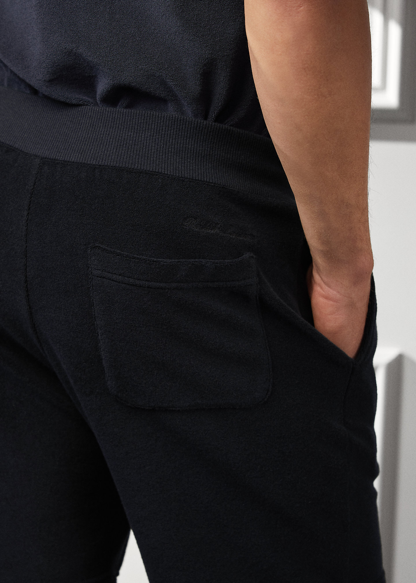 “Ralph Lauren” script embroidered above the back pocket.