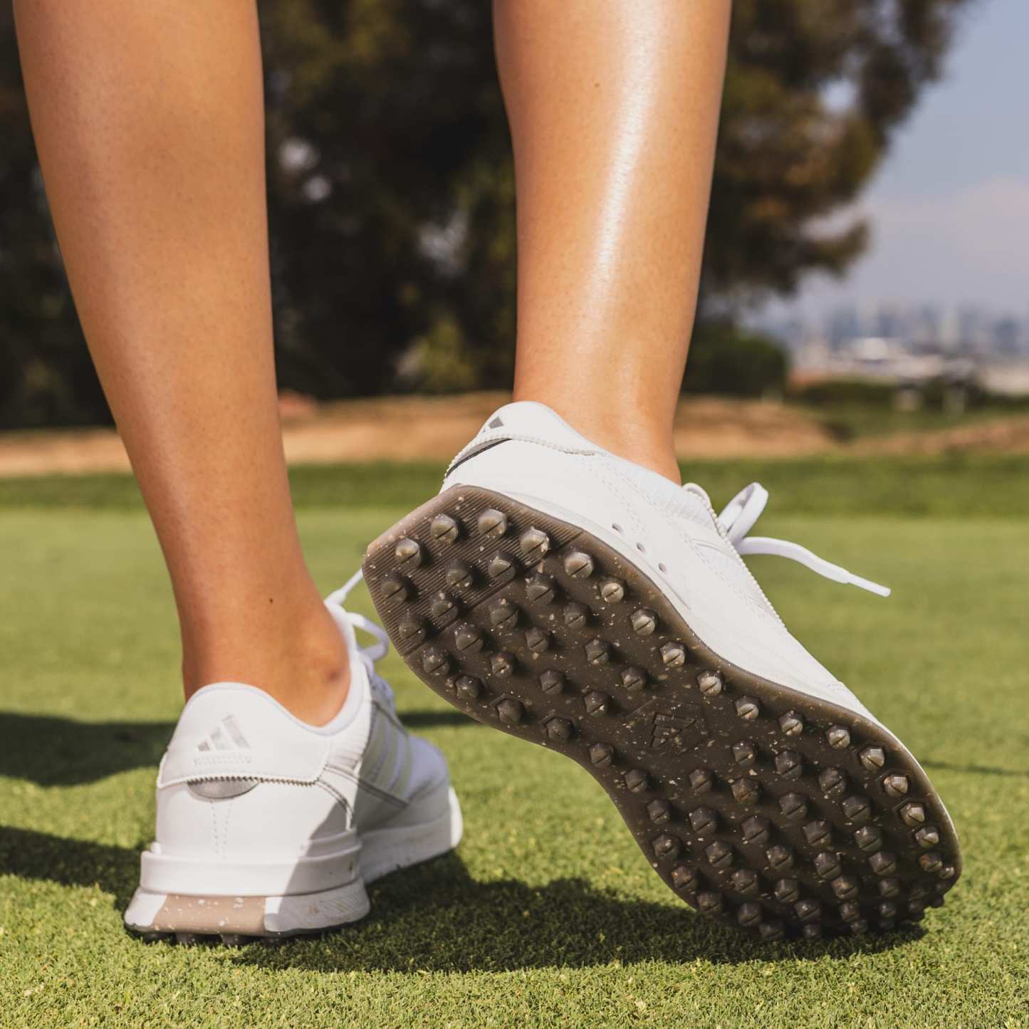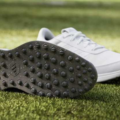 Lace up all-day comfort for social rounds and beyond. Inspired by the lightweight, responsive feel of a running shoe, these spikeless golf shoes offer a solid stance and all-day, anywhere style. The waterproof upper and protective toe cap keep feet dry through damp greens, and the spikeless Adiwear outsole and supportive heel cup provide the stability and traction for a strong stance while making for easy transitions off the course.By choosing recycled, we are able to reuse materials that have already been created, which helps to reduce waste. Renewable materials choices will help us to remove our reliance on finite resources. Our products made with a blend of recycled and renewable materials feature at least 20% total of these materials.