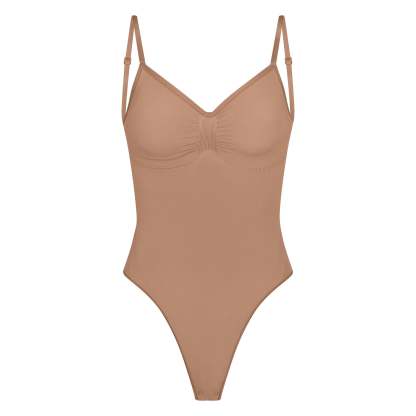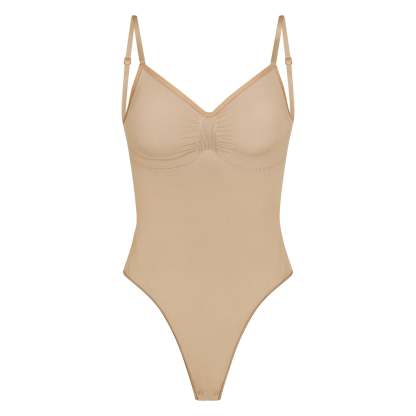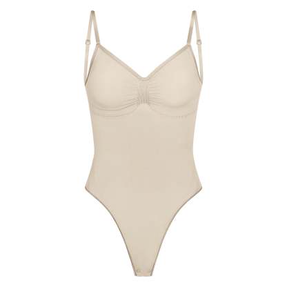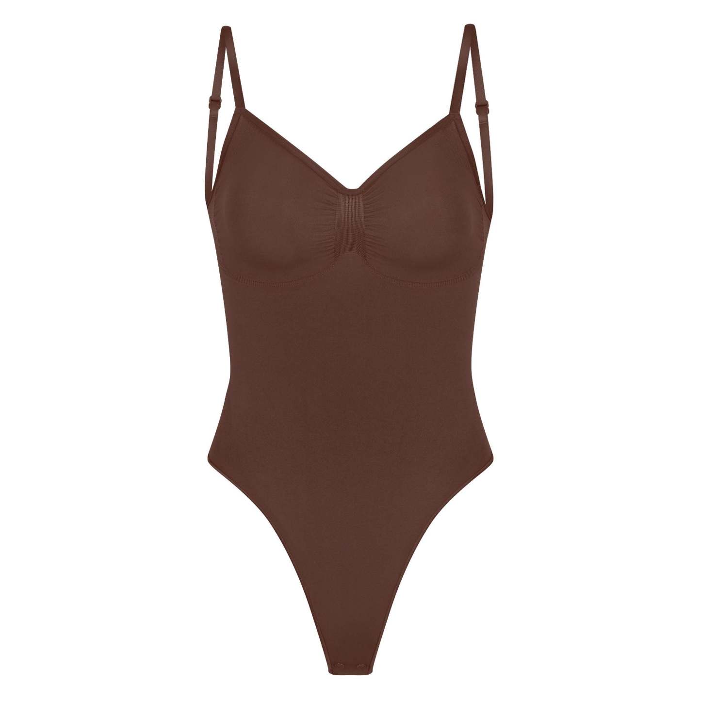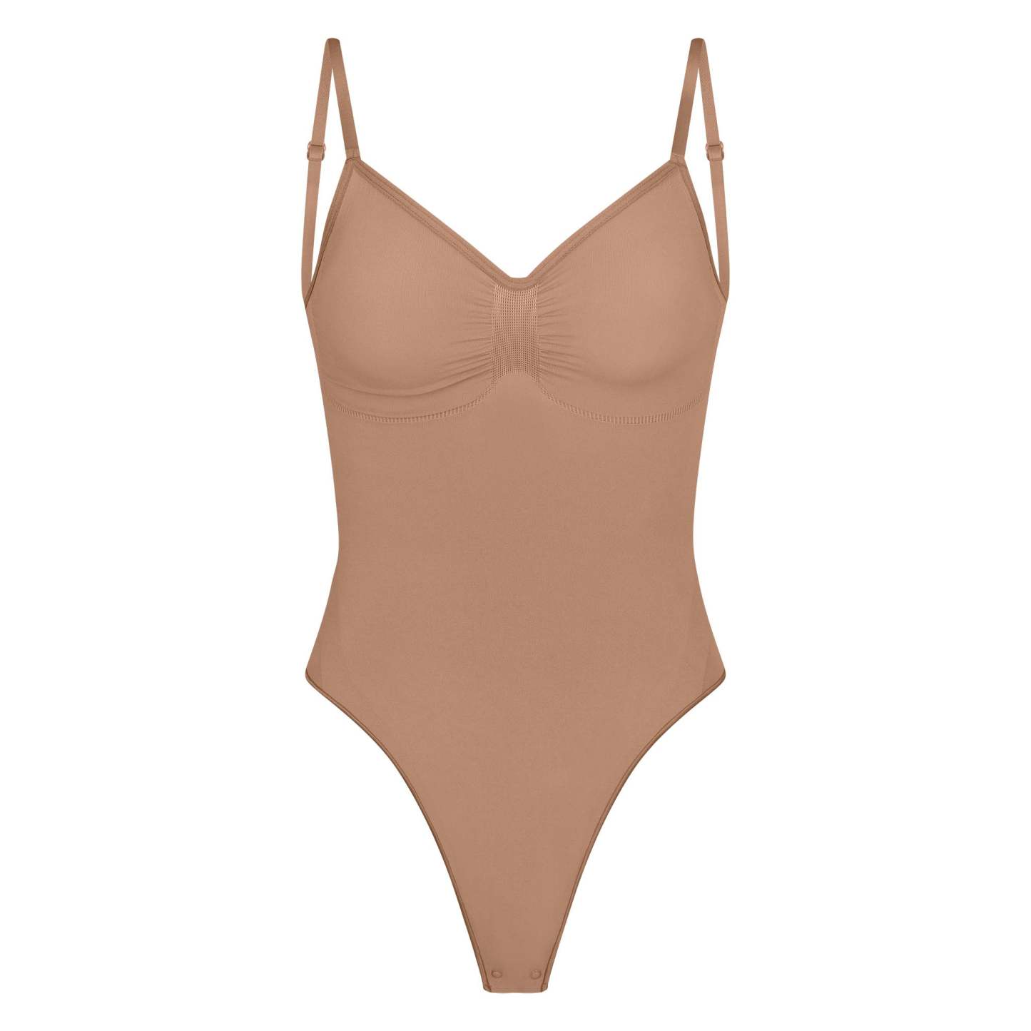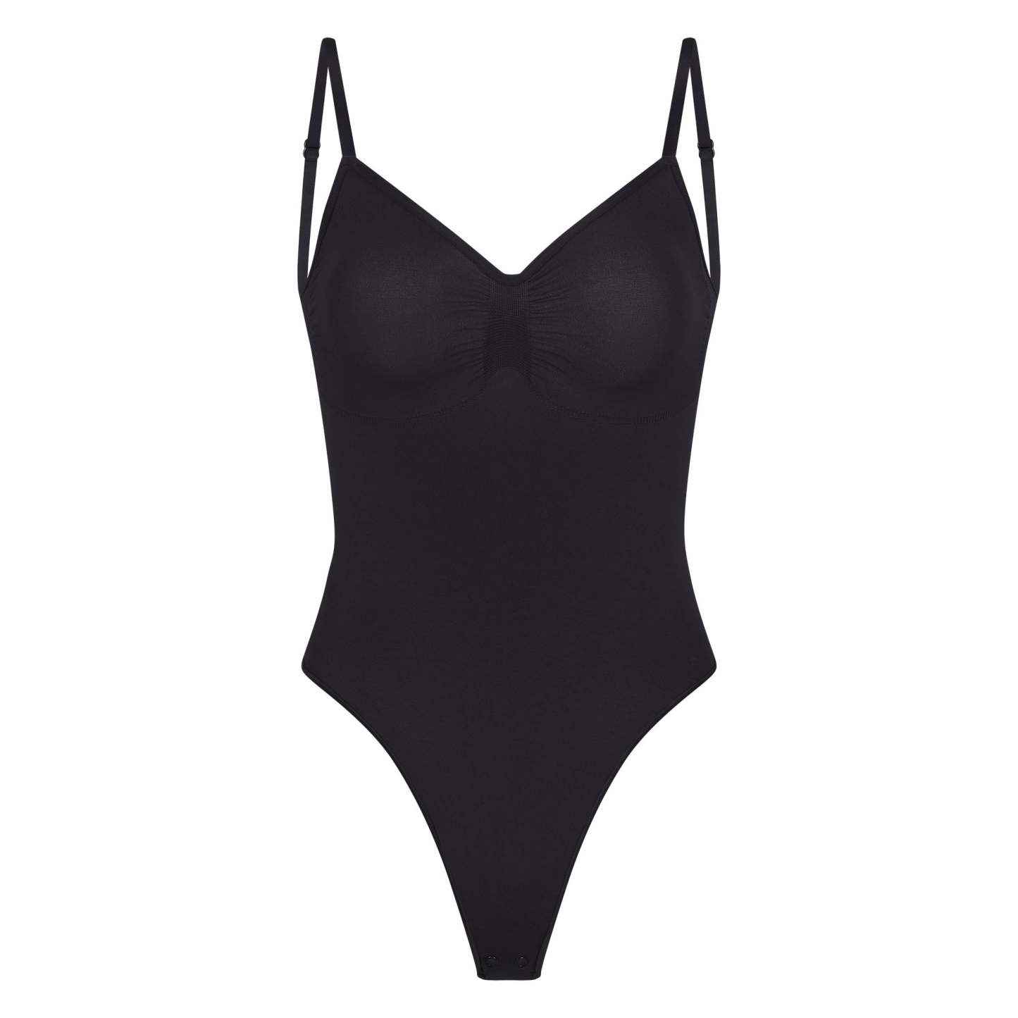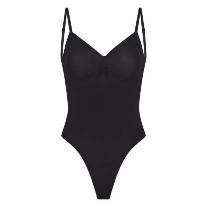 This low back thong solution creates an ultra-flattering silhouette with strong compression along the tummy, core, and waist. Features adjustable convertible straps with hooks that can be worn as shoulder or cross-back straps, front pique stitching that supports and enhances your bust, a wide crotch for added coverage, and a cotton gusset with snap closure. Fits true to size.- Scoop front neckline, Adjustable straps, Strong compression along tummy, core and waist, Wide gusset for added coverage, Thong back, 100% Cotton gusset with snap closure