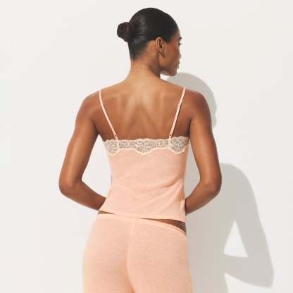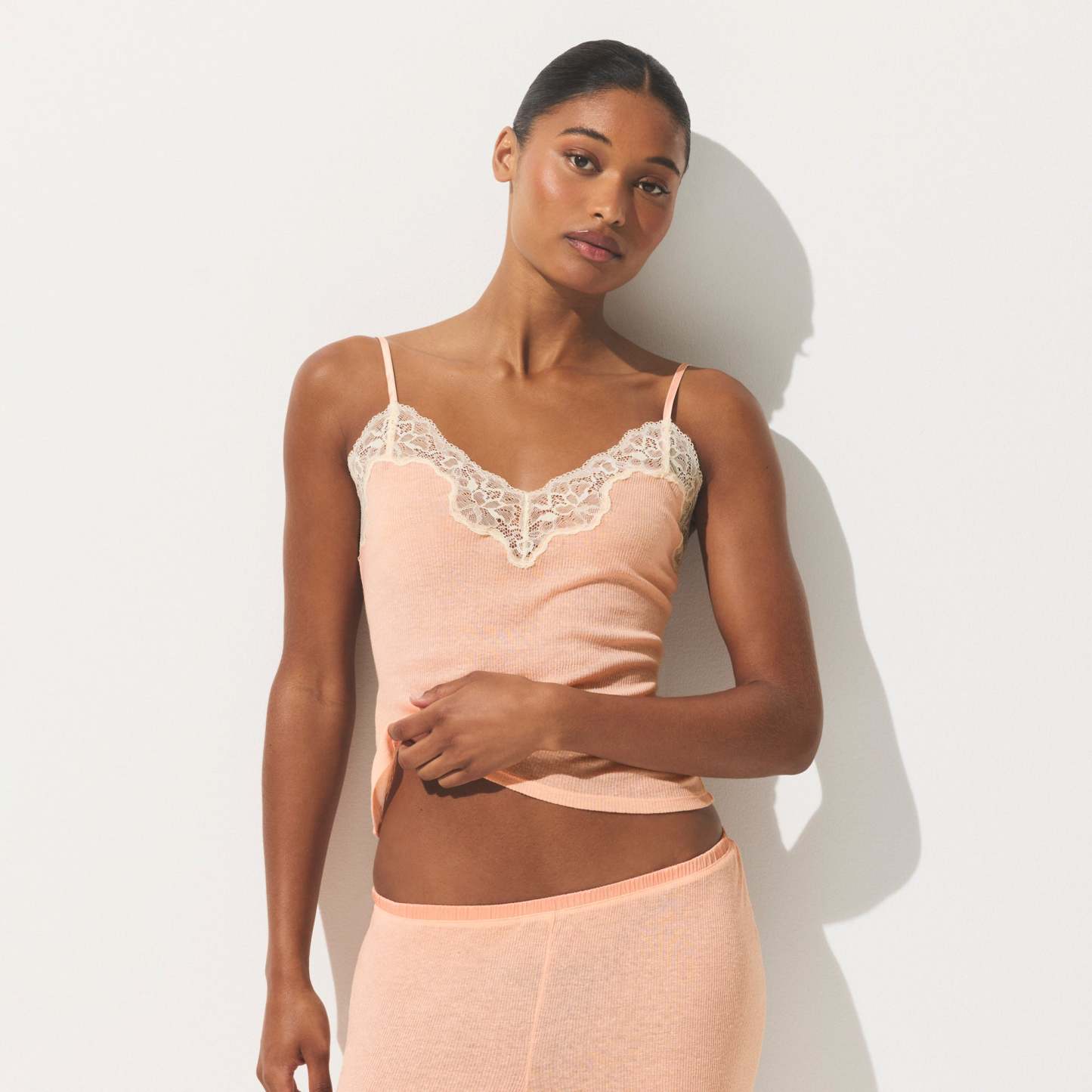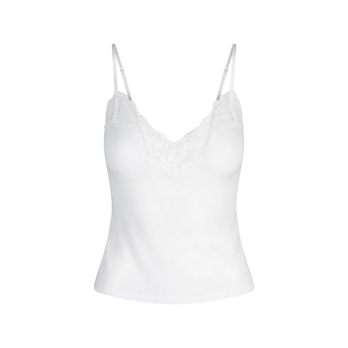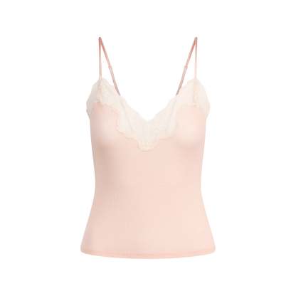 Delicate and dreamy. Make a sweet statement in this relaxed, airy Sheer Cotton cami with feminine lace trim detailing. Complete with adjustable straps and fits true to size.