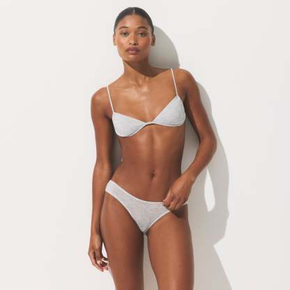 Sexy and soft in our sheer ribbed fabric, this low-rise hipster boasts a cheeky back and lightweight, next-to-nothing feel. Complete with elastic at the waist and leg opening and a 100% cotton gusset. Fits true to size.