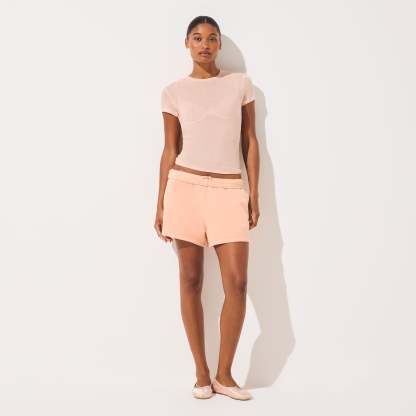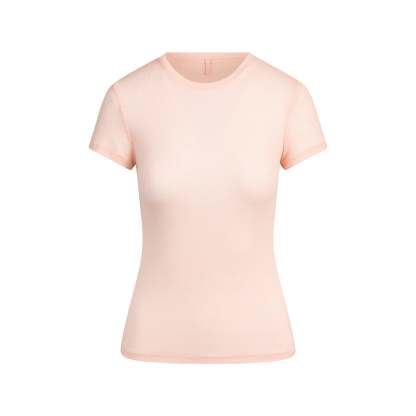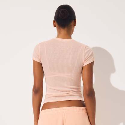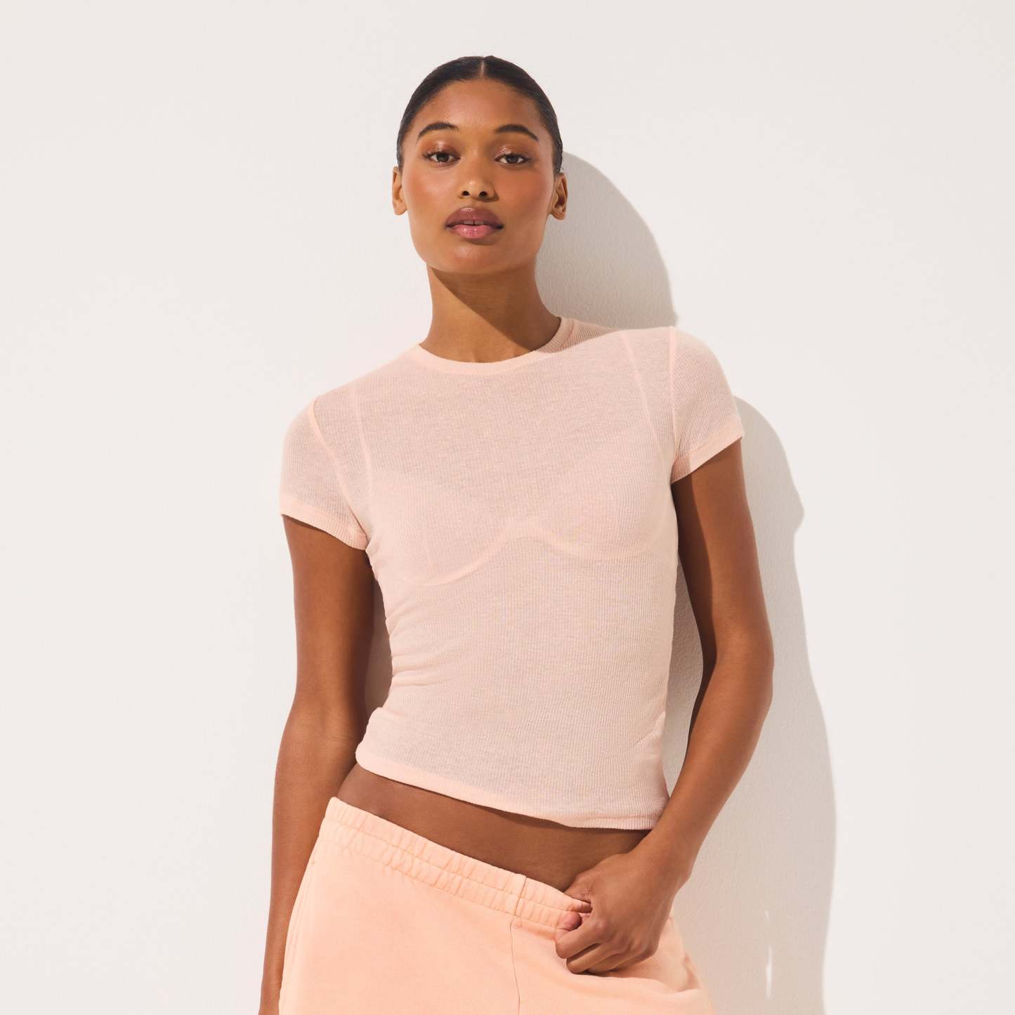 Sexy basics. With its bold, sheer look and slightly drapey fit, this is the elevated essential you’ll reach for every time. Features a high crew neck and fits true to size.