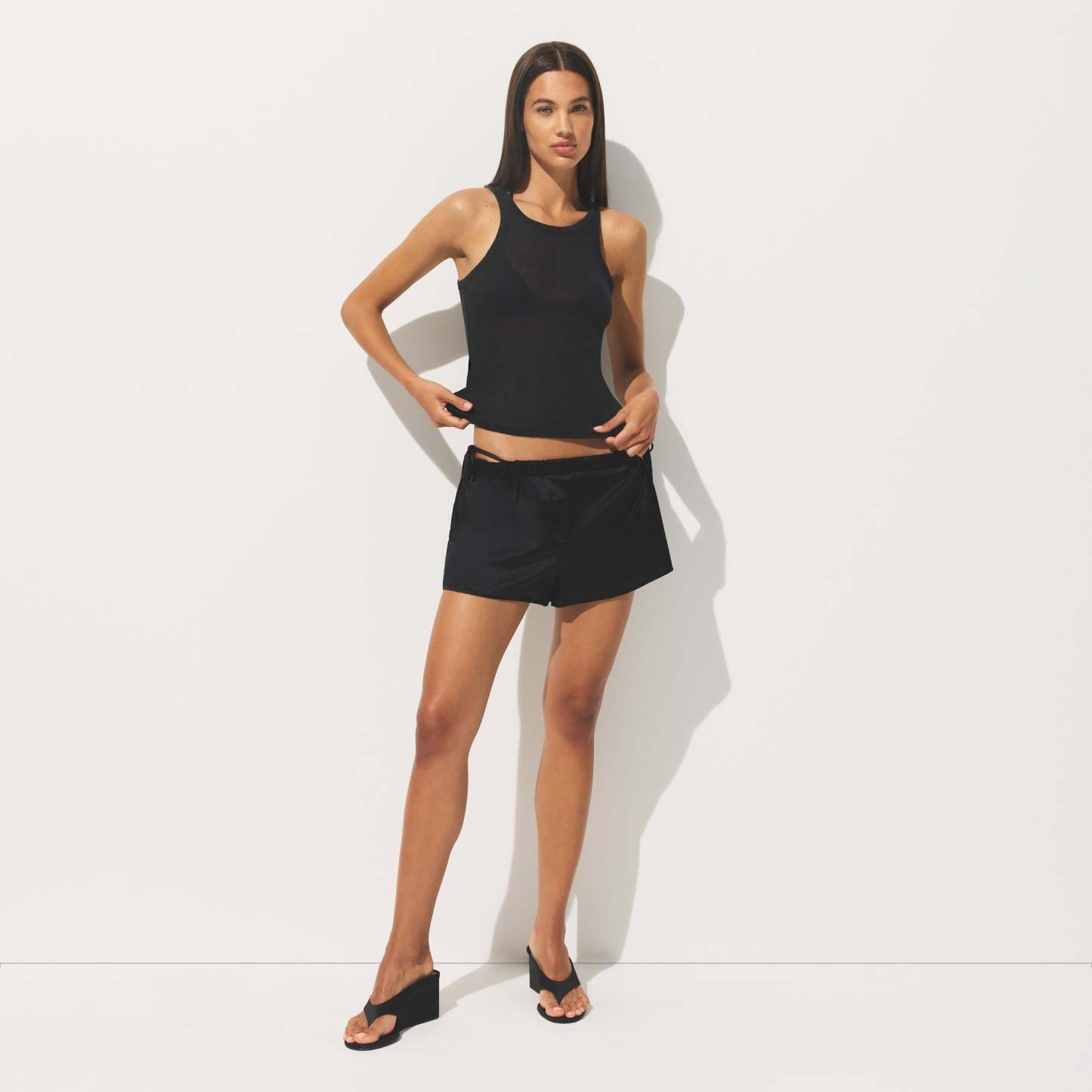 The sexiest tank ever. Designed in our sheer ribbed cotton, this airy top is the sexiest layer you’ll have in your closet. Features a crew neckline with cutaways at the arms. Fits true to size.