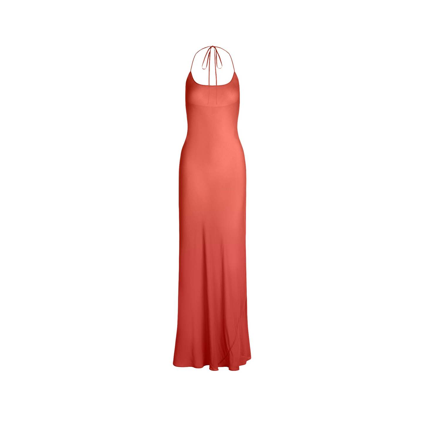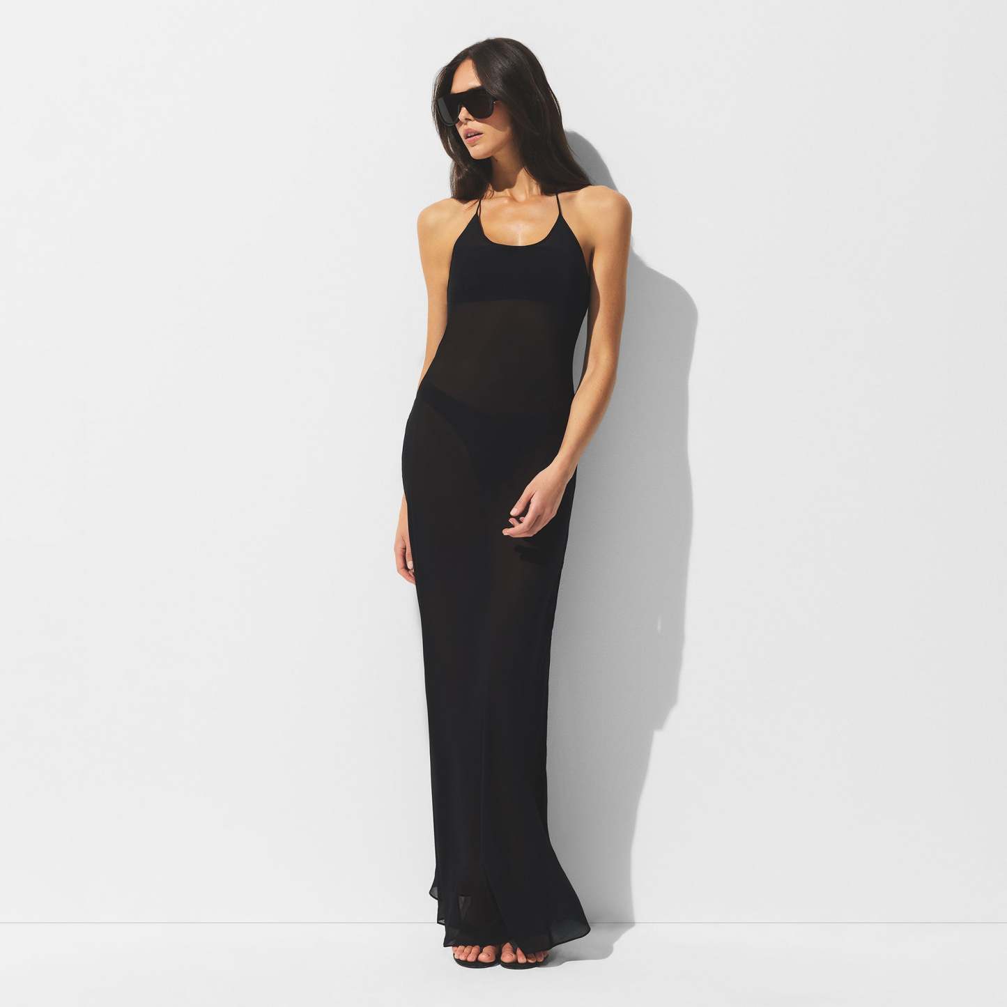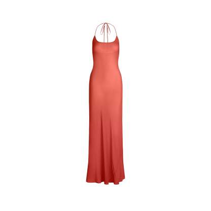 The ultimate getaway statement. Sheer and luxe in our lightweight viscose fabric, this sexy long slip features a dipped back, flattering scoop neckline, and flowy silhouette. Complete with ties at the neck and fits true to size.