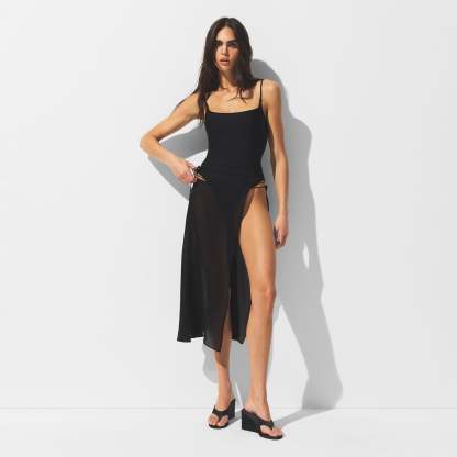 Polished poolside. This flowy midi skirt is made with our sheer and delicate viscose for an elevated look over your swimsuit. Features a flattering wrap silhouette and long adjustable ties at the waist. Fits true to size.