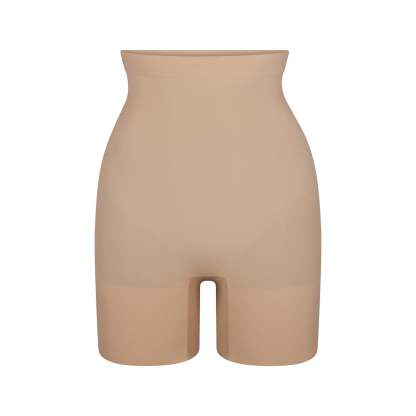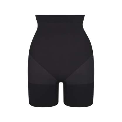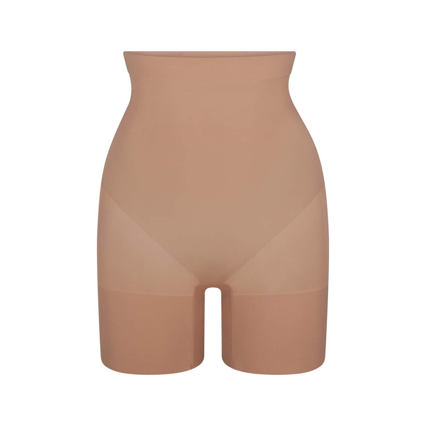Wear this ultra-breathable high waist mid thigh shapewear short for comfortable all-day control of the tummy, waist, and thighs. Features an underband with interior silicone to prevent rolling, double-ply no-dig compression at the thighs, butt pockets that lift and define, and an open gusset. Fits true to size- Underband with interior silicone to prevent rolling, Mid-level compression along tummy and waist, Hits at mid thigh, Double ply compression and support along the thighs that doesn't dig, Butt pockets to lift and add butt definition, Open gusset
