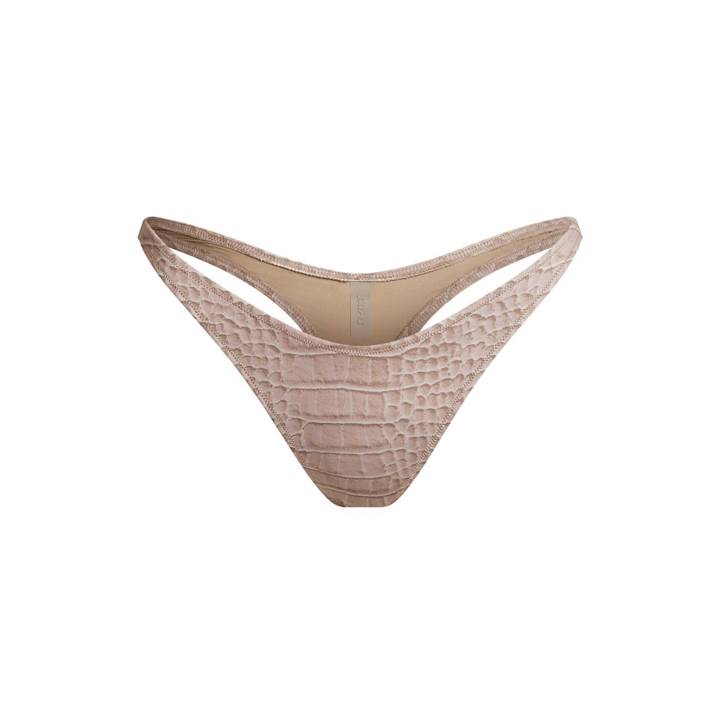 Make waves. All eyes will be on your butt in this sexy, dipped front swim style with thong back coverage. Features a SKIMS logo detail on the back waist and fits true to size.