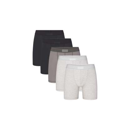 - 5-pack, Breathable mid-Weight cotton, Spandex for recovery and stretch, SKIMS branding on exterior waistband, Engineered pouch and gusset for comfort, Features a 3" inseam