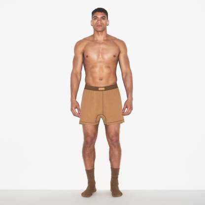 The slim boxer you’ll wish you switched to sooner. Engineered with our soft, breathable cotton with built-in recovery, this knit boxer brings you the best in comfort. Features a functional fly opening with hidden button and SKIMS logo at the soft waistband. Fits true to size.