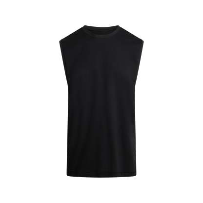 This classic can’t be topped. Designed in our soft, breathable 100% cotton, this sleeveless relaxed tee is perfect for everyday wear. Features a ribbed crew neckline and fits true to size.