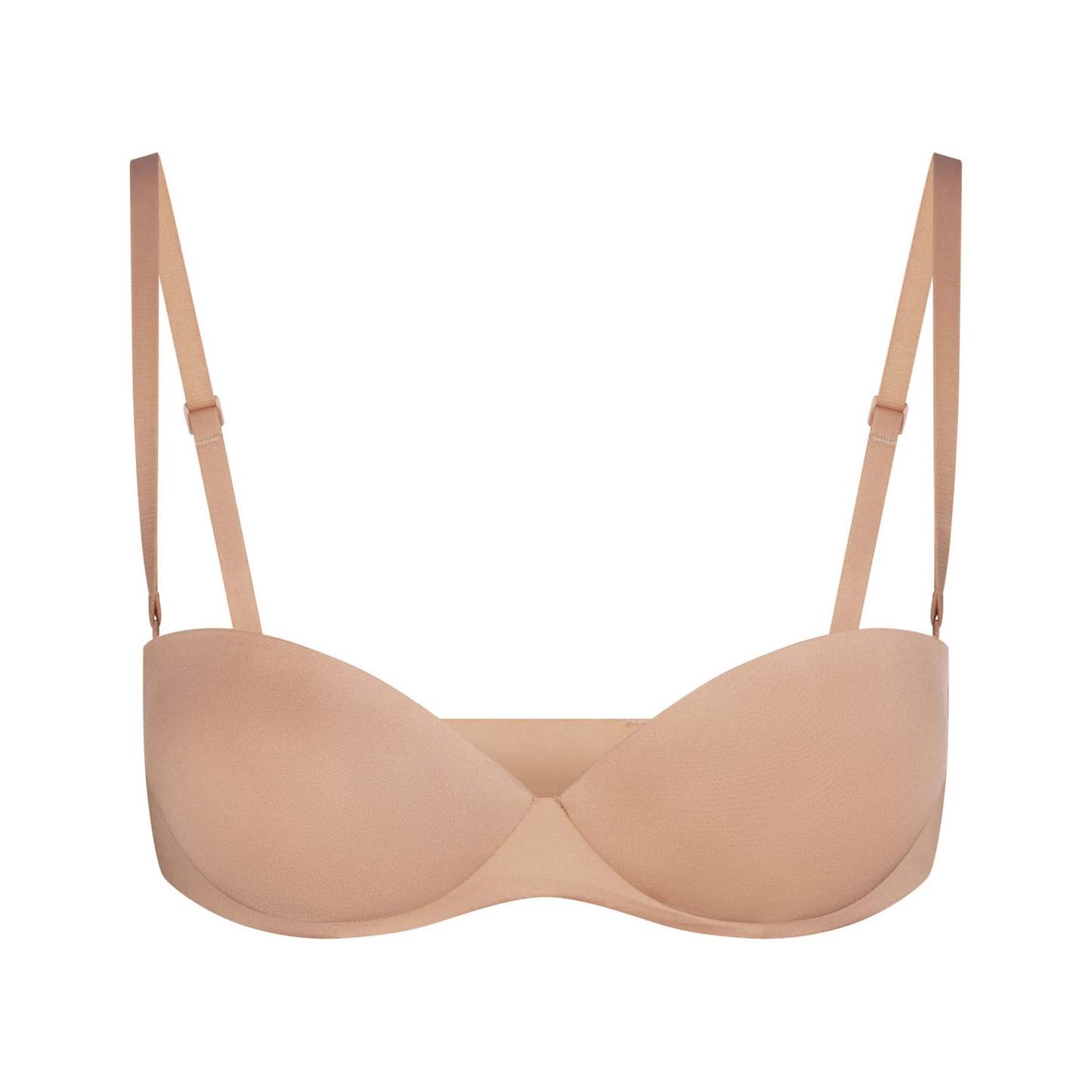 - Strapless neckline with a bonded pressed foam for a seamless look under clothing, Push-up pad that creates a naturally round and full shape, Concealed underwire with a soft brushed casing for comfort, Removable convertible straps with adjustability, Hook and eye closure at back
