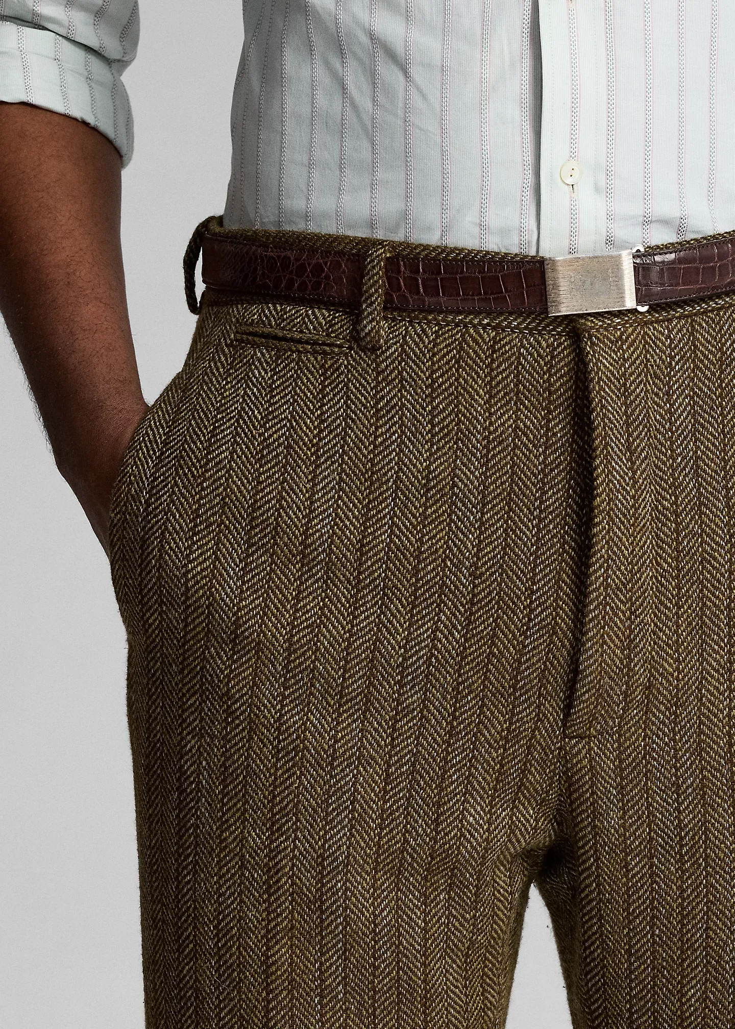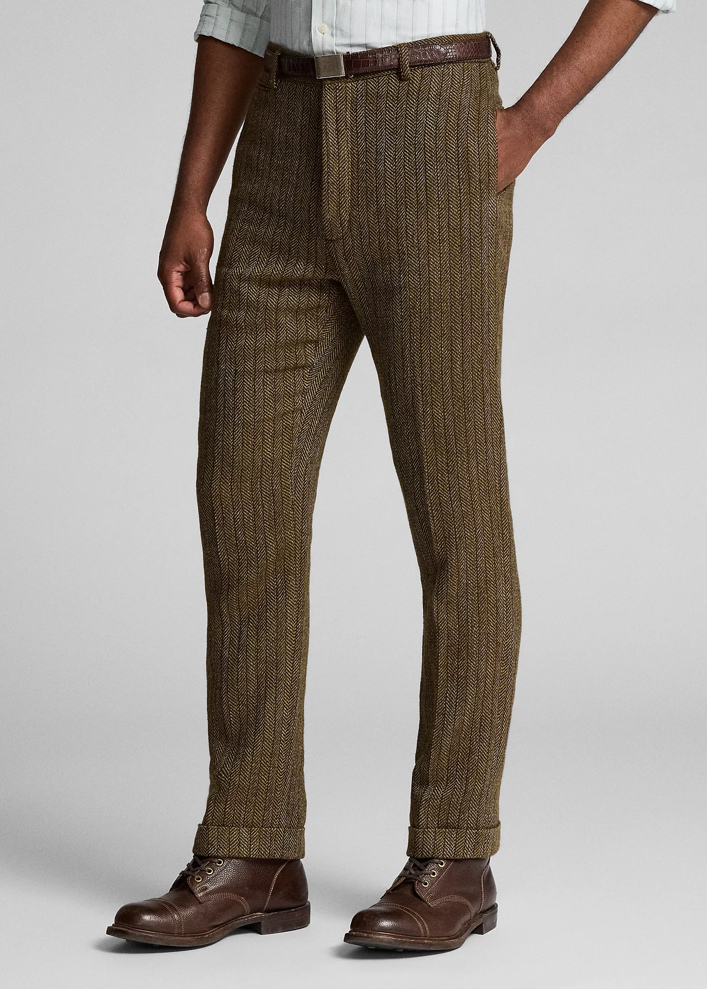 Trouser comes unhemmed with a 38" inseam. Alterations available in Ralph Lauren retail stores.