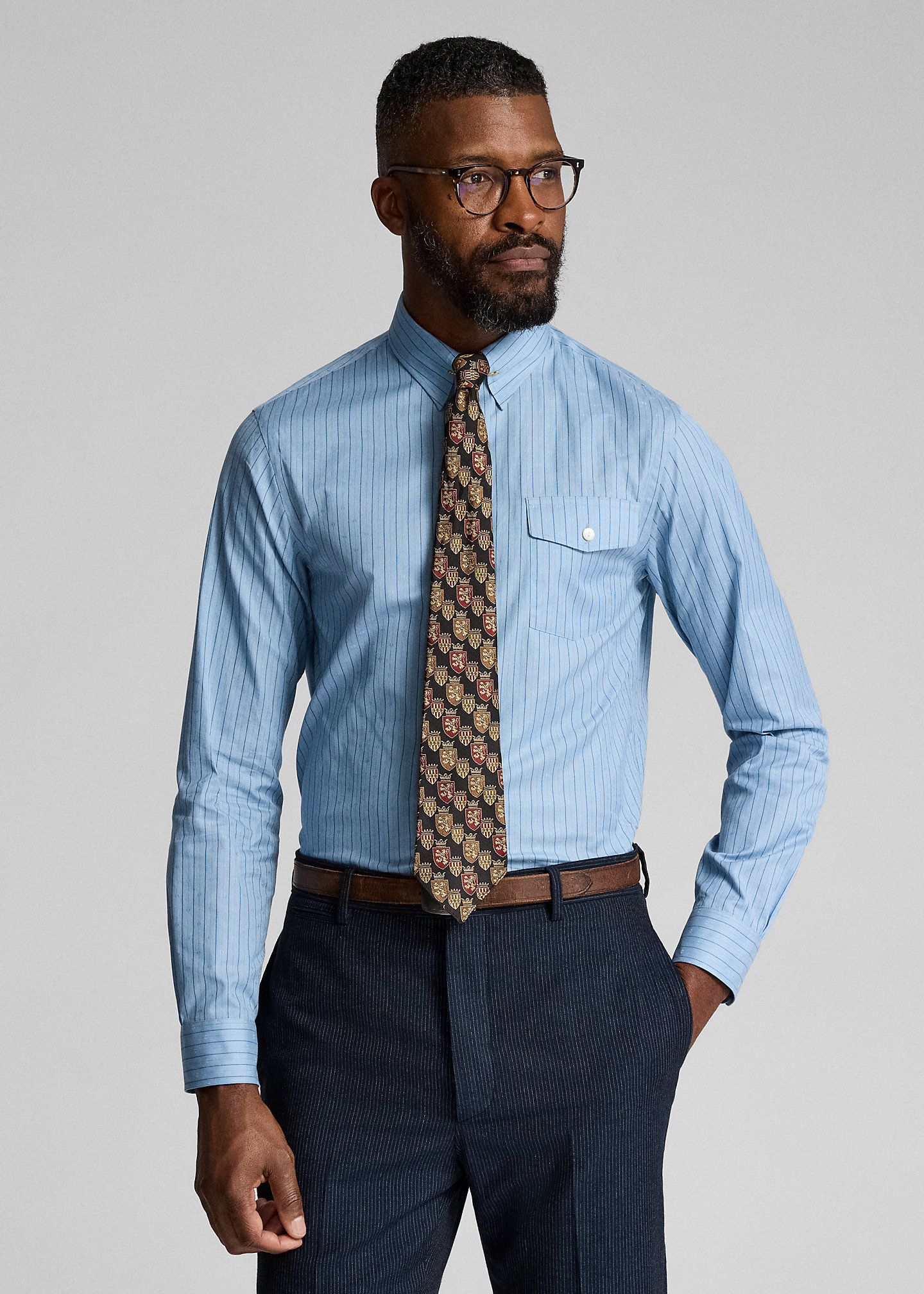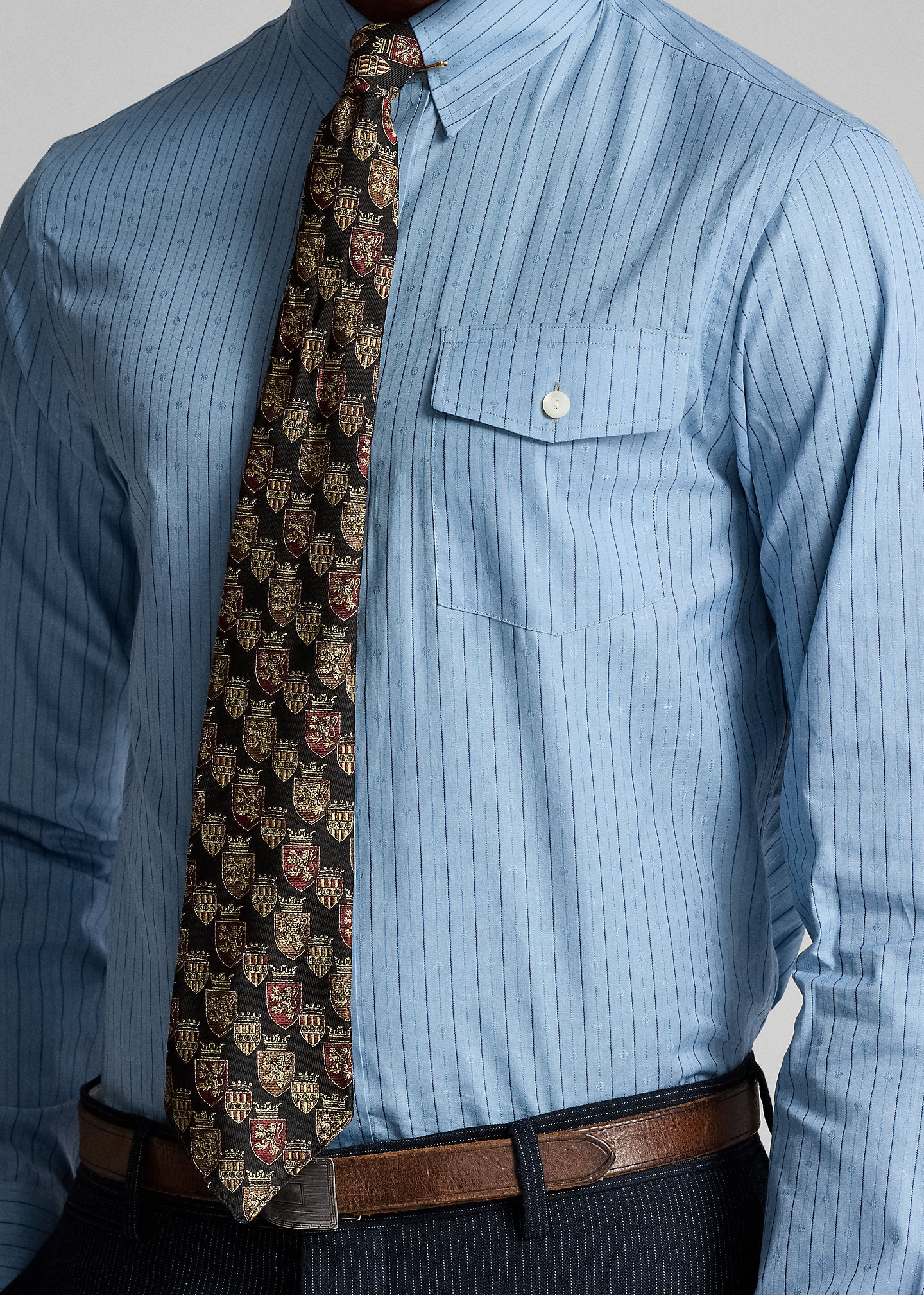 - Left chest buttoned pocket.