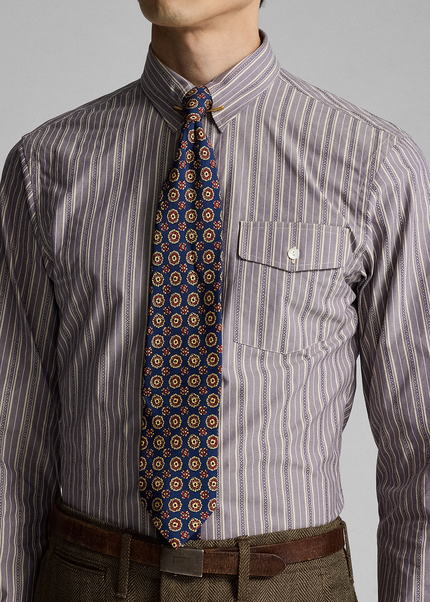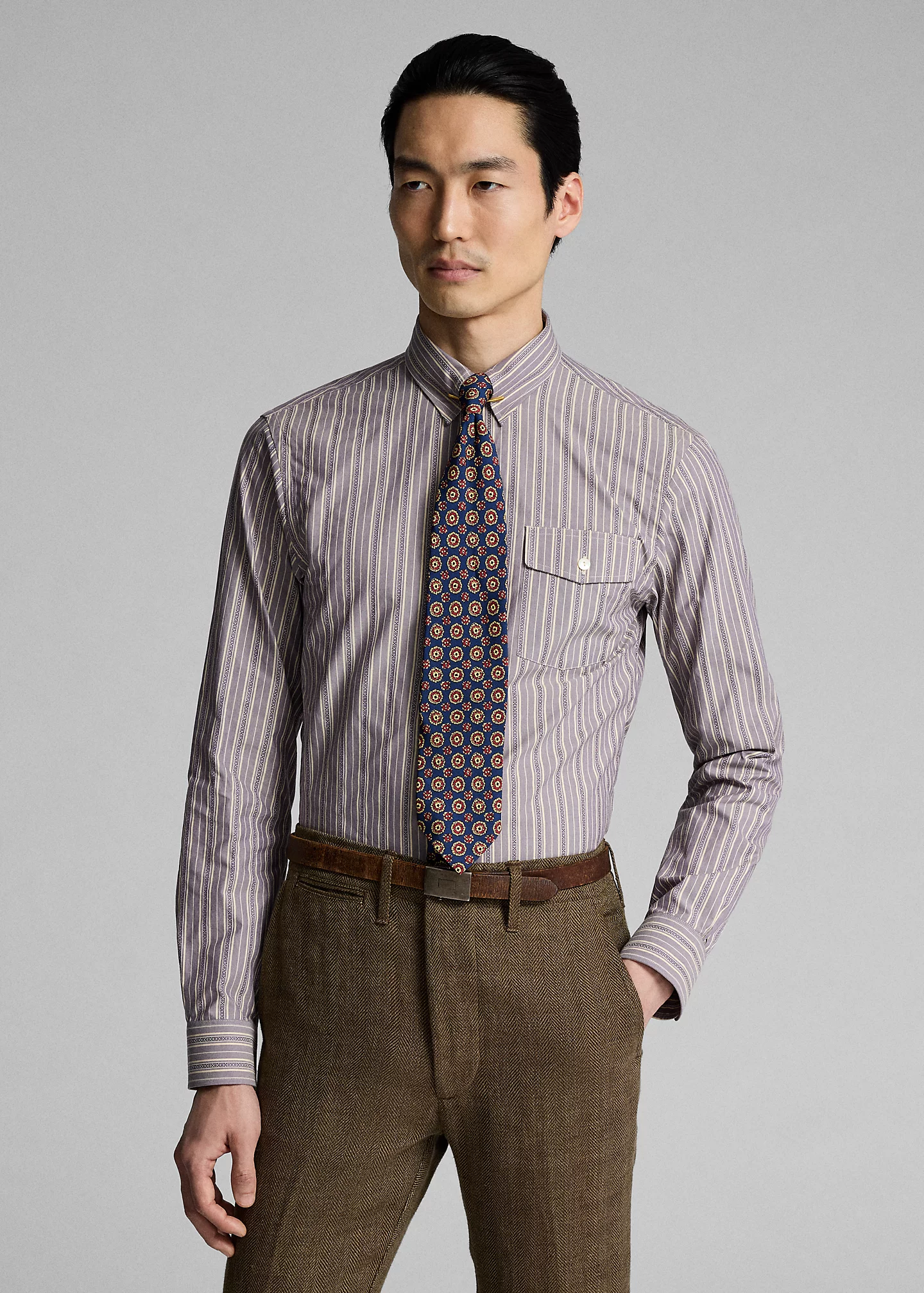 - Left chest buttoned pocket.