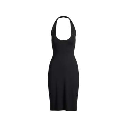 From brunch to date night, this midi is a must. Designed in our smooth and slinky modal, this plunge halter midi dress features a sexy low back and curve-hugging fit. Features an interior shelf bra for support. Hits below the knee and fits true to size.
