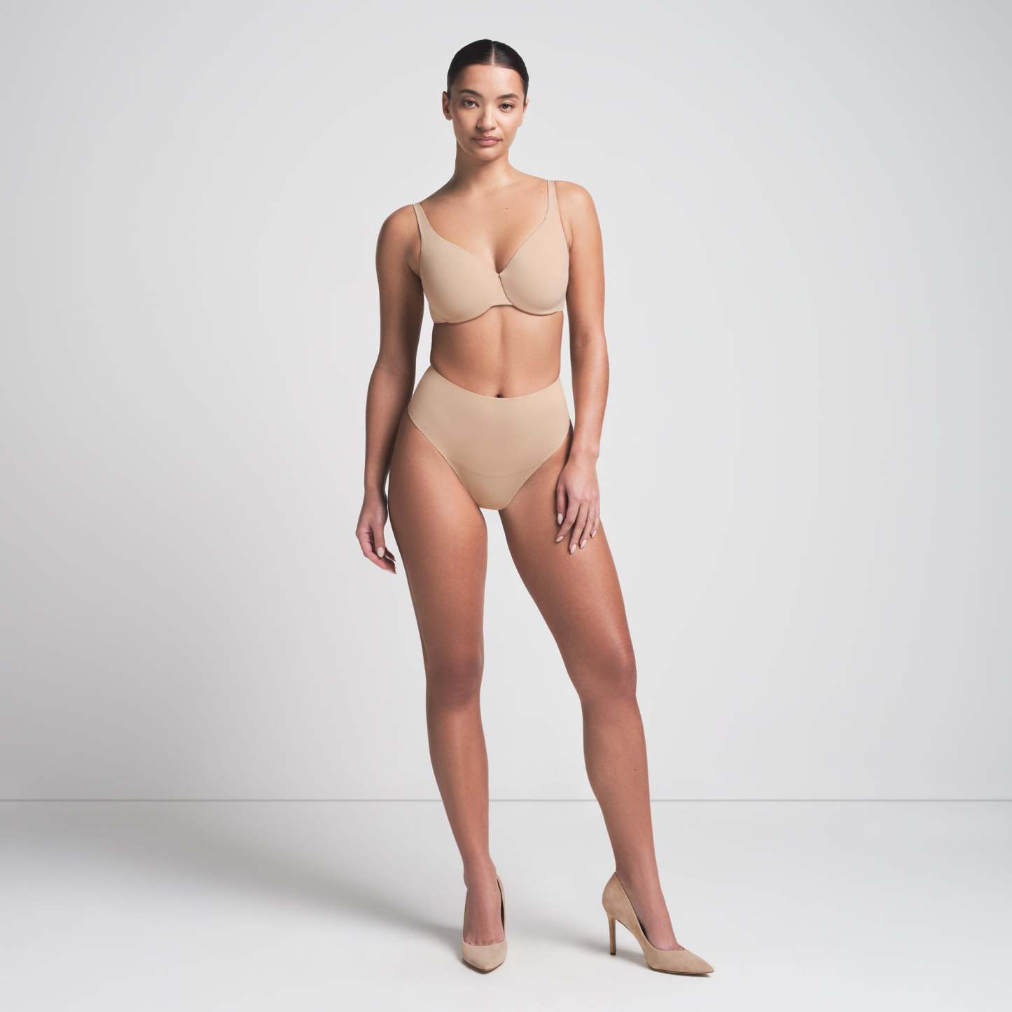 Flatters, never flattens. Reduce your breast projection by up to two inches with this plunge minimizer bra, designed in the softest microfiber fabric. This solution features full coverage cups and a hidden, cushioned underwire for all-day support and a less pronounced bust. Complete with adjustable straps, a hook and eye back closure, and silicone logo detail. Fits true to your SKIMS bra size.
