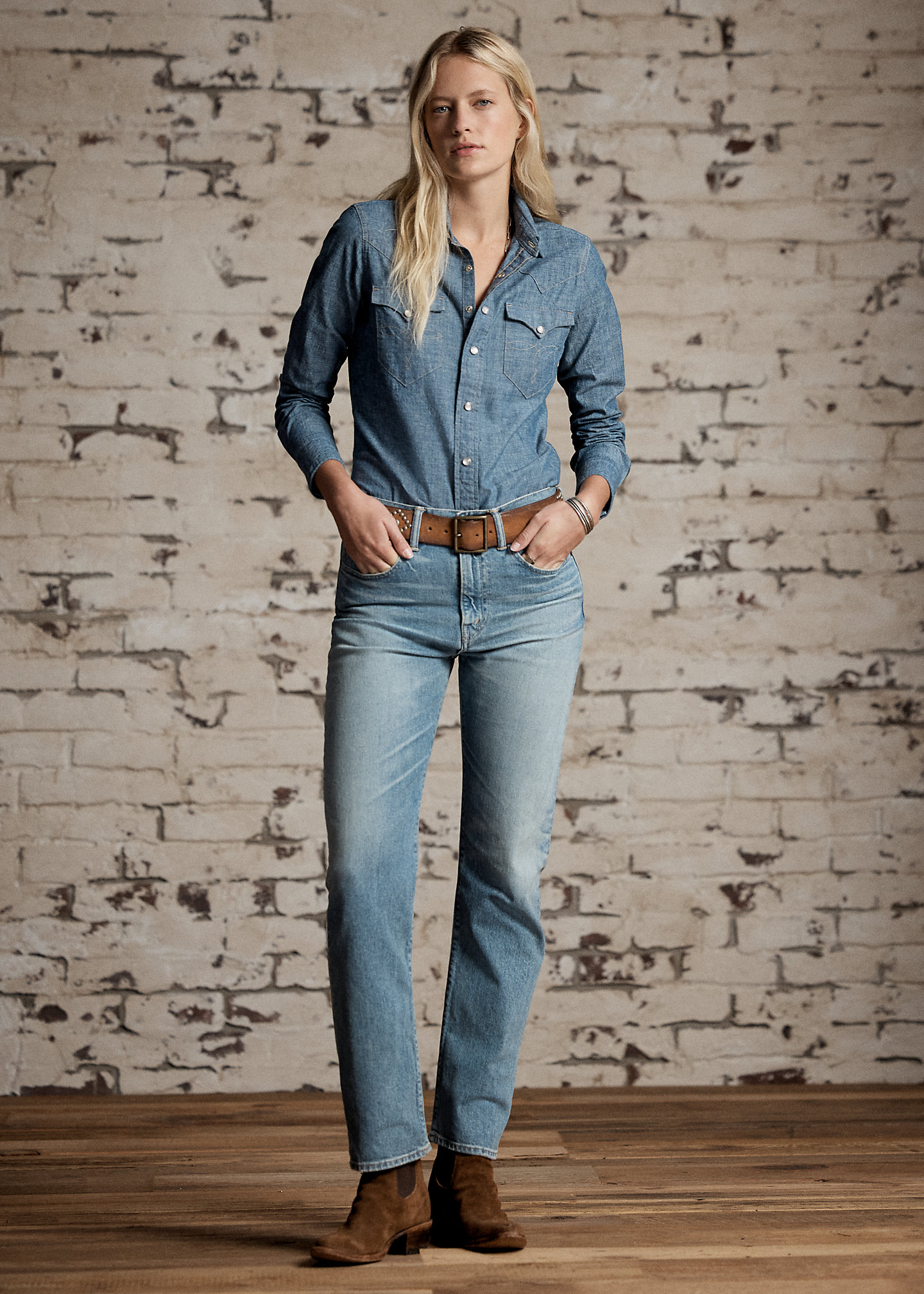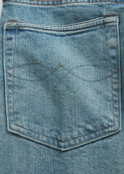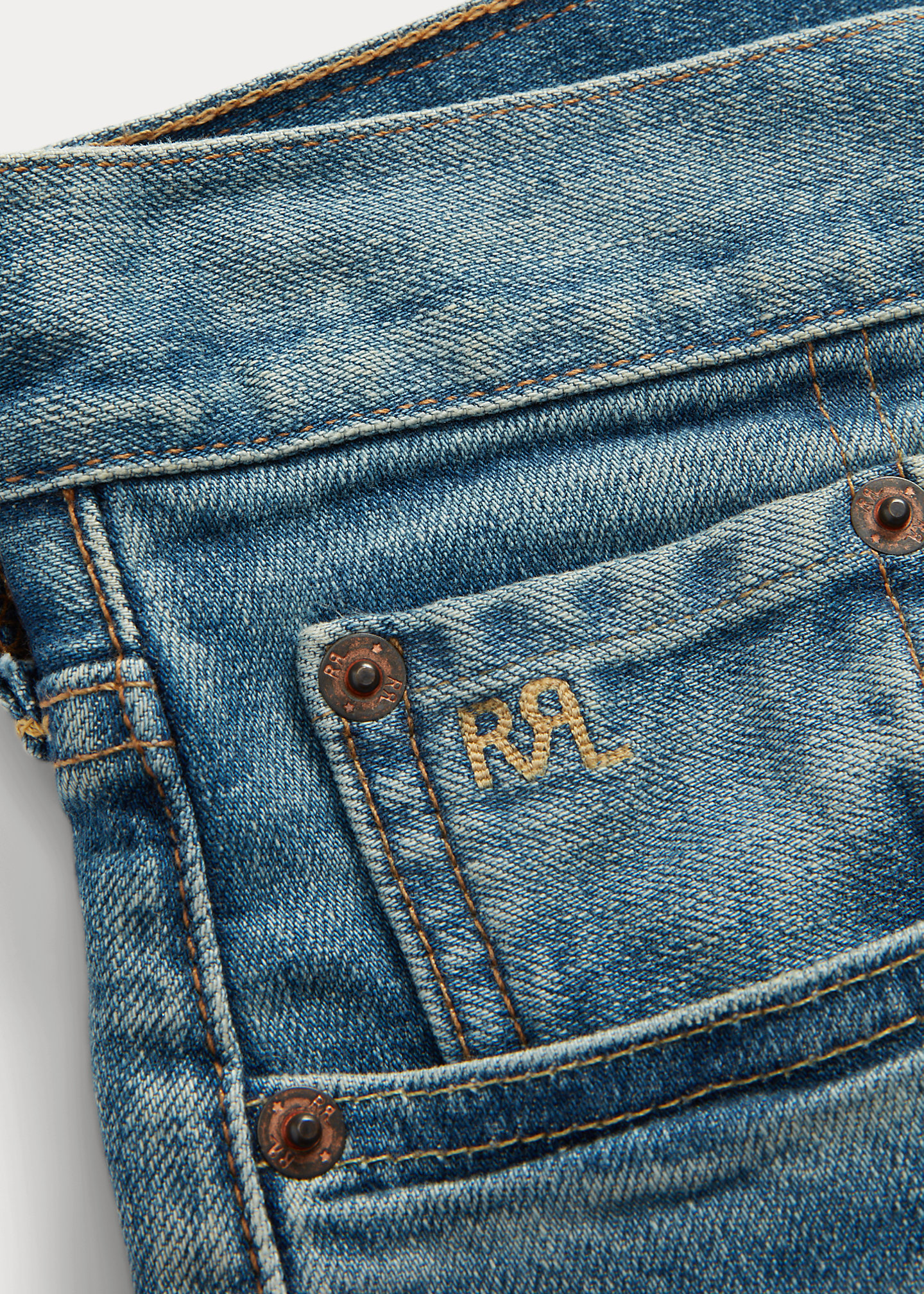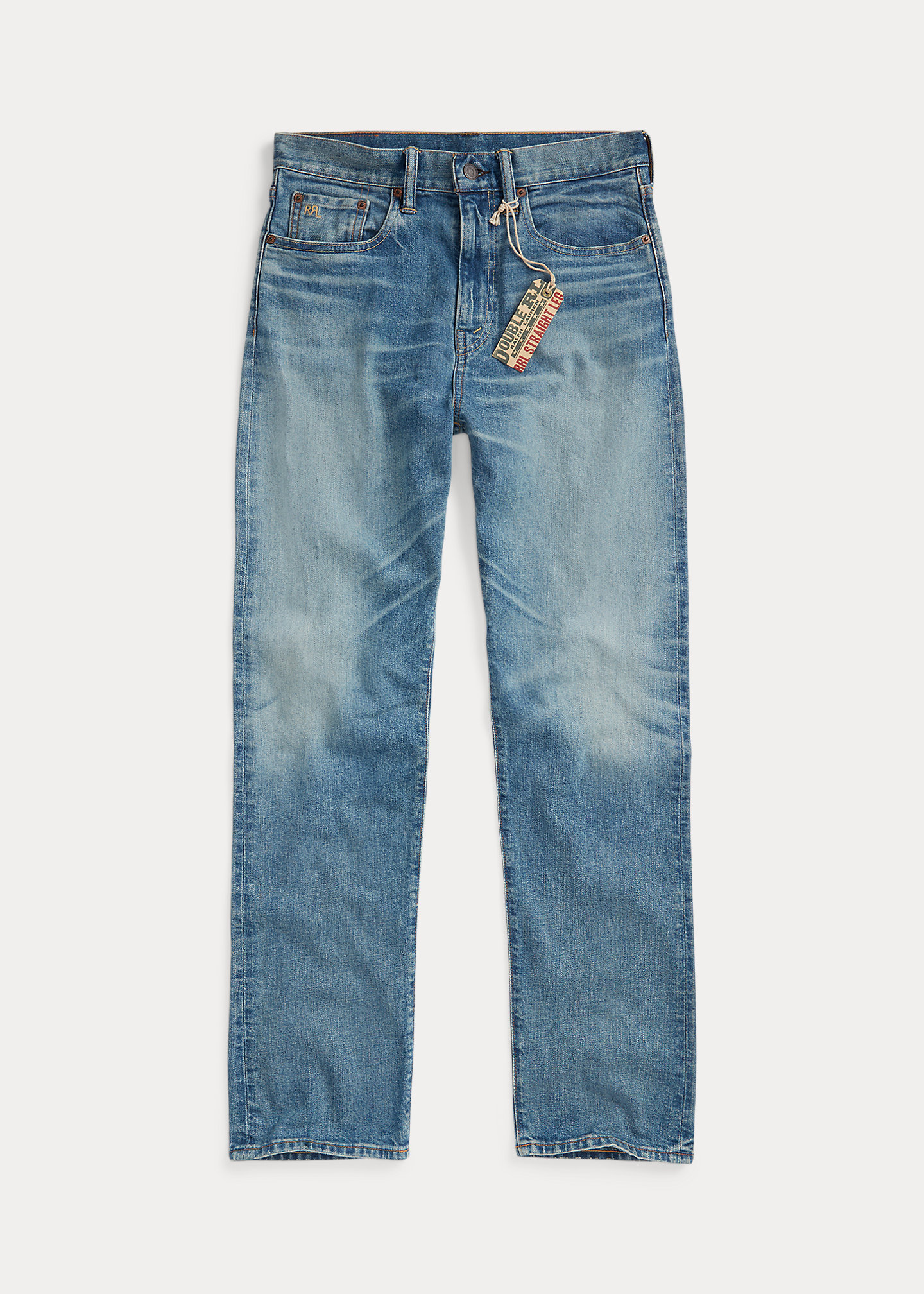 - Five-pocket styling. "RRL" embroidery at the coin pocket. "RRL"-debossed logo patch at the back right waist. Dyed with indigo, which may rub off onto fabrics, leather, and upholstery.