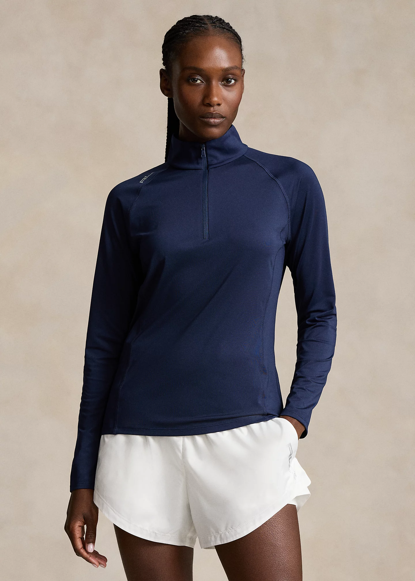 - Back yoke zip pocket. "RLX" printed at the right shoulder.