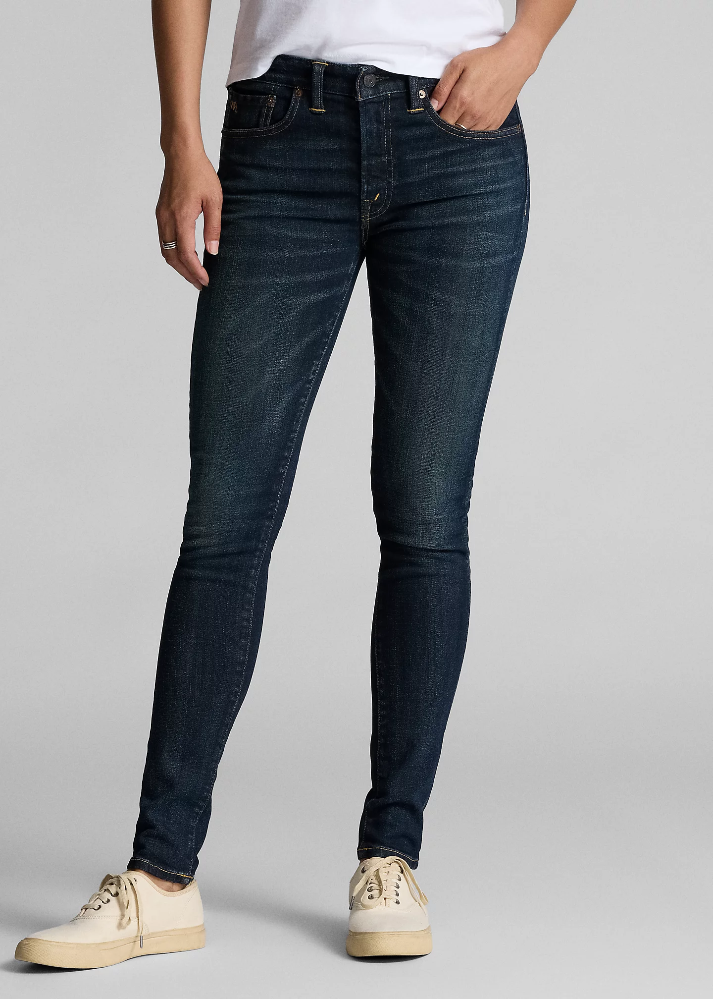 - Skinny Fit: mid-rise. Sits at the hip. Skinny through the hip and the thigh. Intended to hit at the ankle.