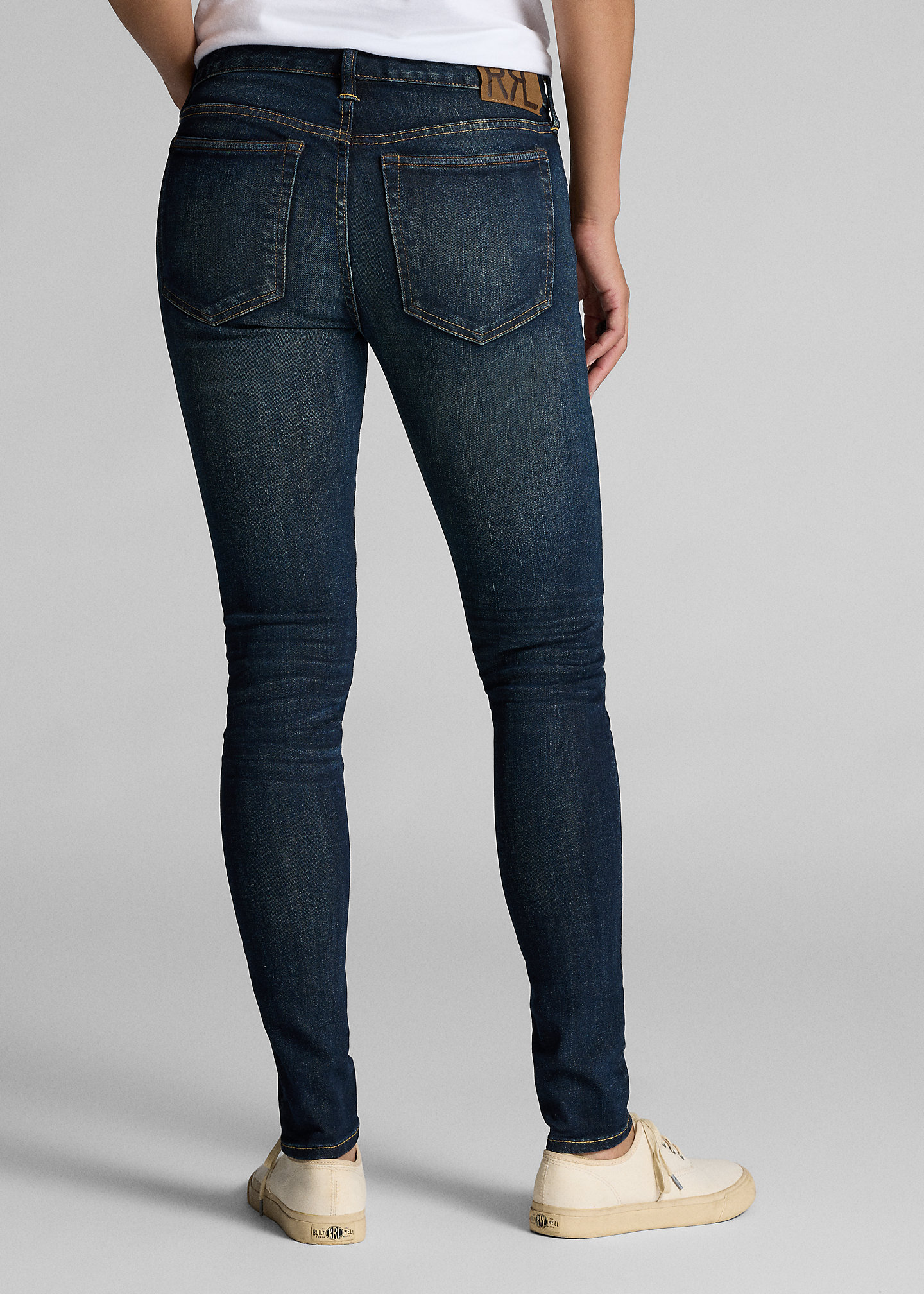 - “RRL”-debossed logo patch at the back right waist.