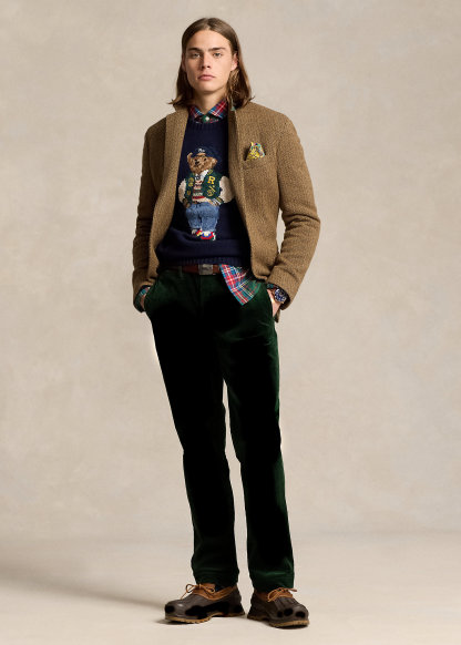 - Belt loops. Zip fly with a buttoned closure. Two front angled pockets. Right hip coin pocket. Two back buttoned pockets. Signature embroidered Pony above the back right pocket.