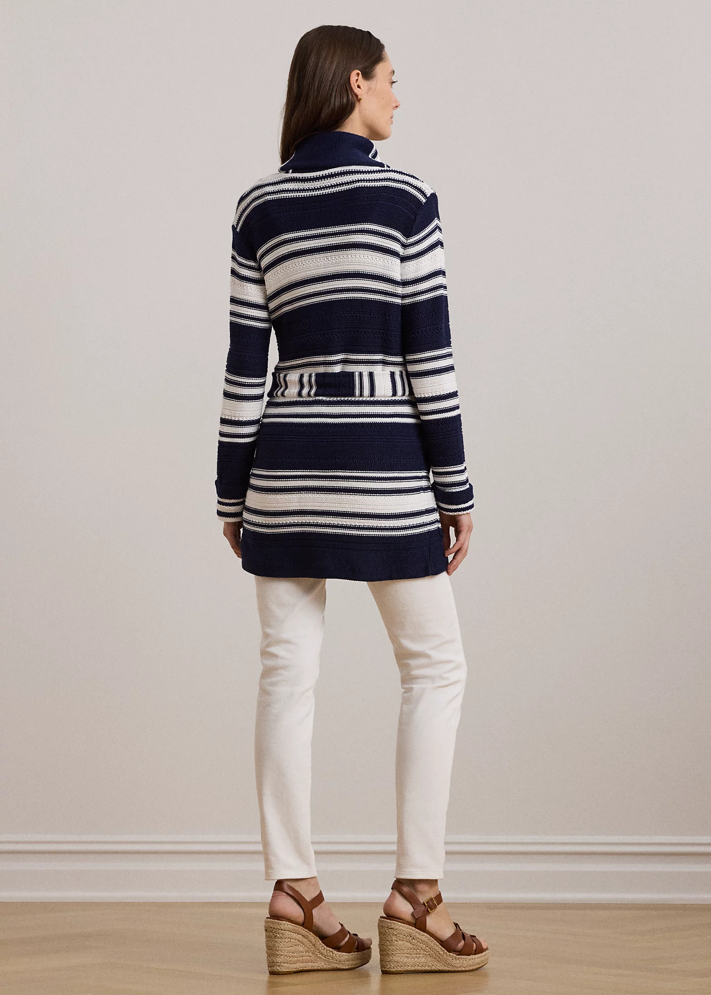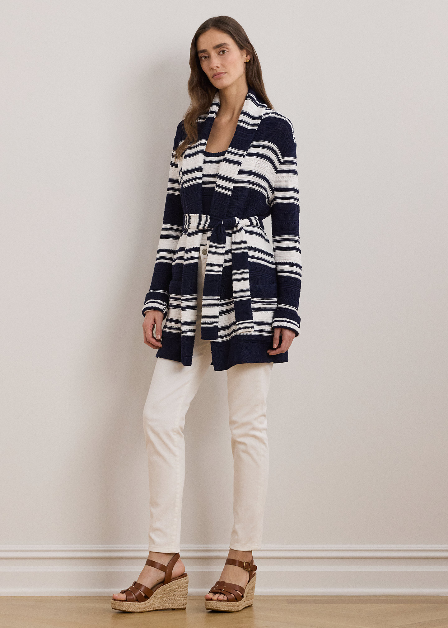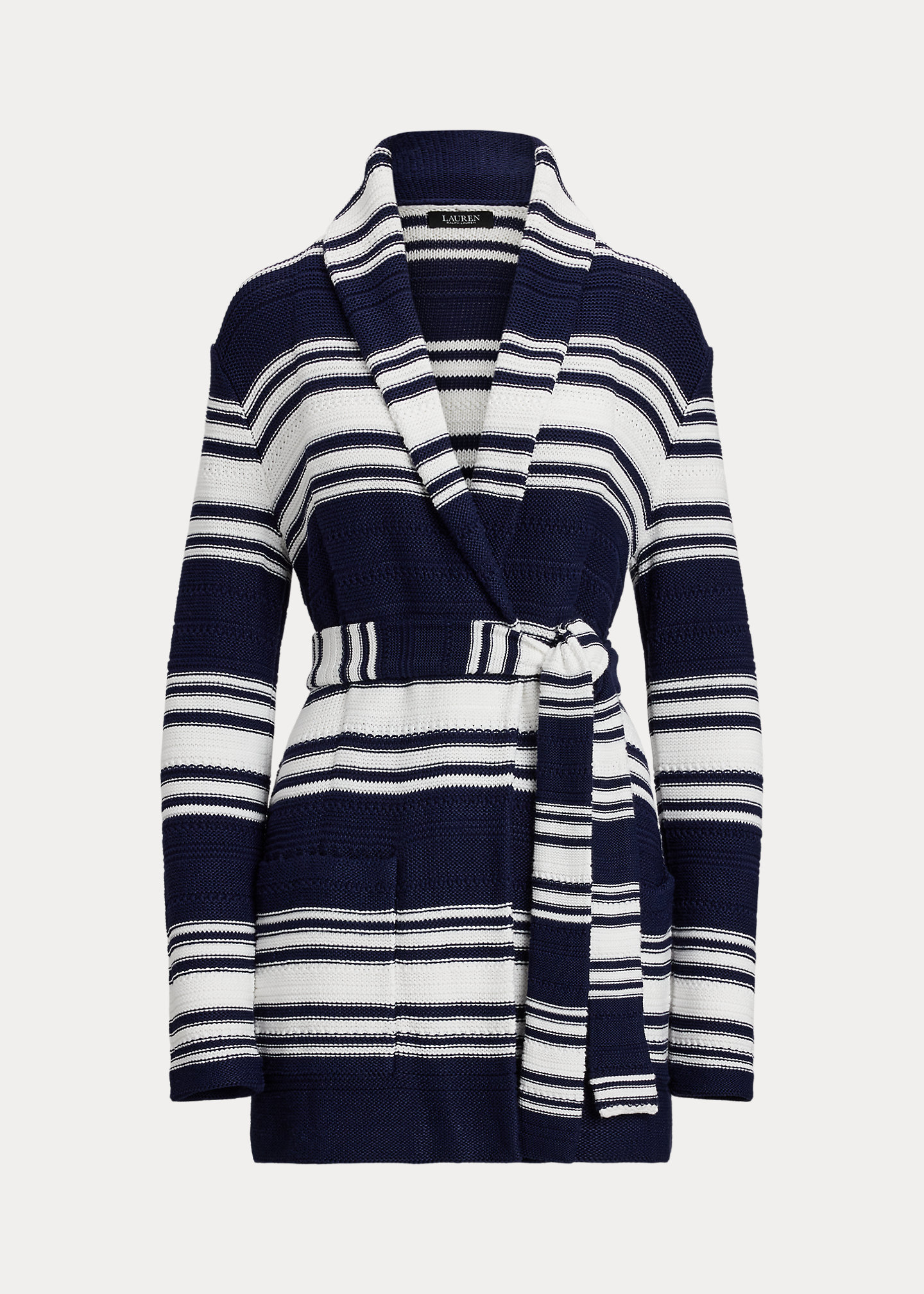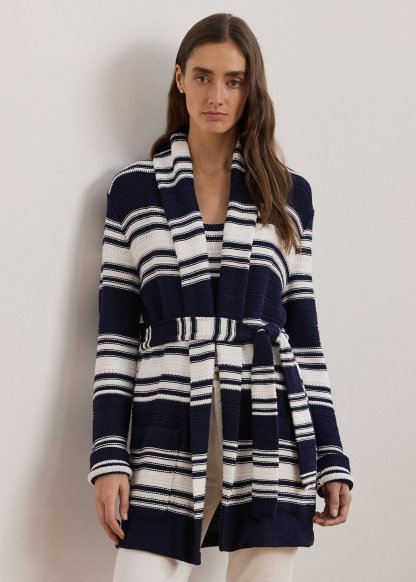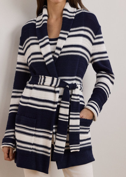 Striped Belted Cotton-Blend Cardigan