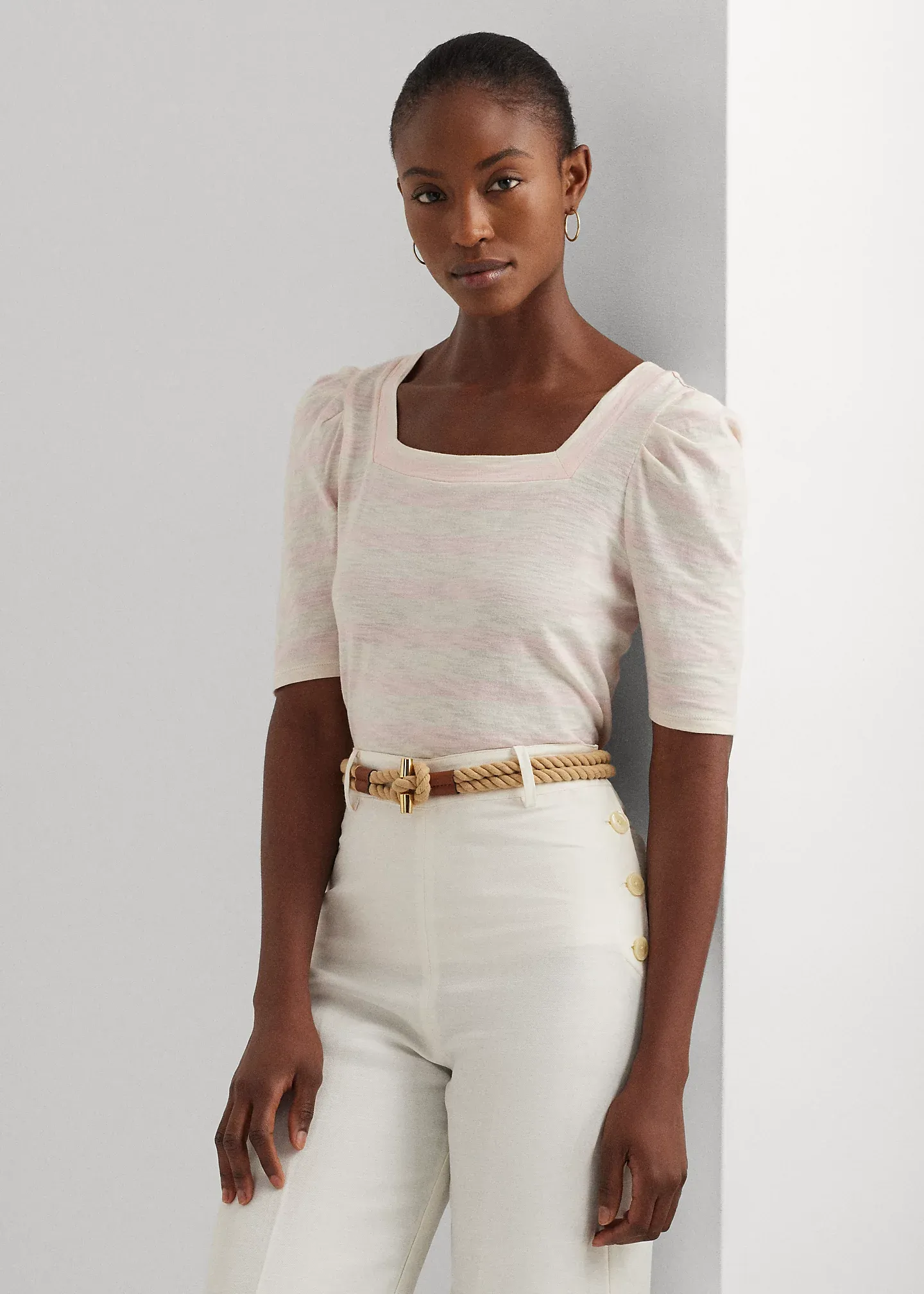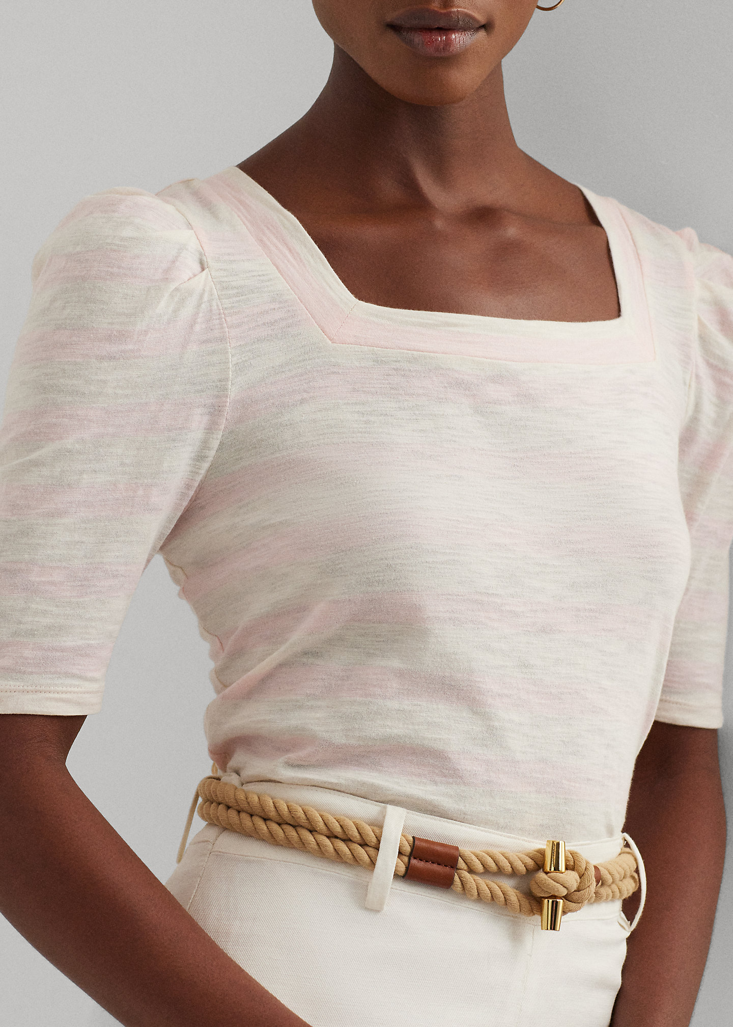 - Square neckline.
