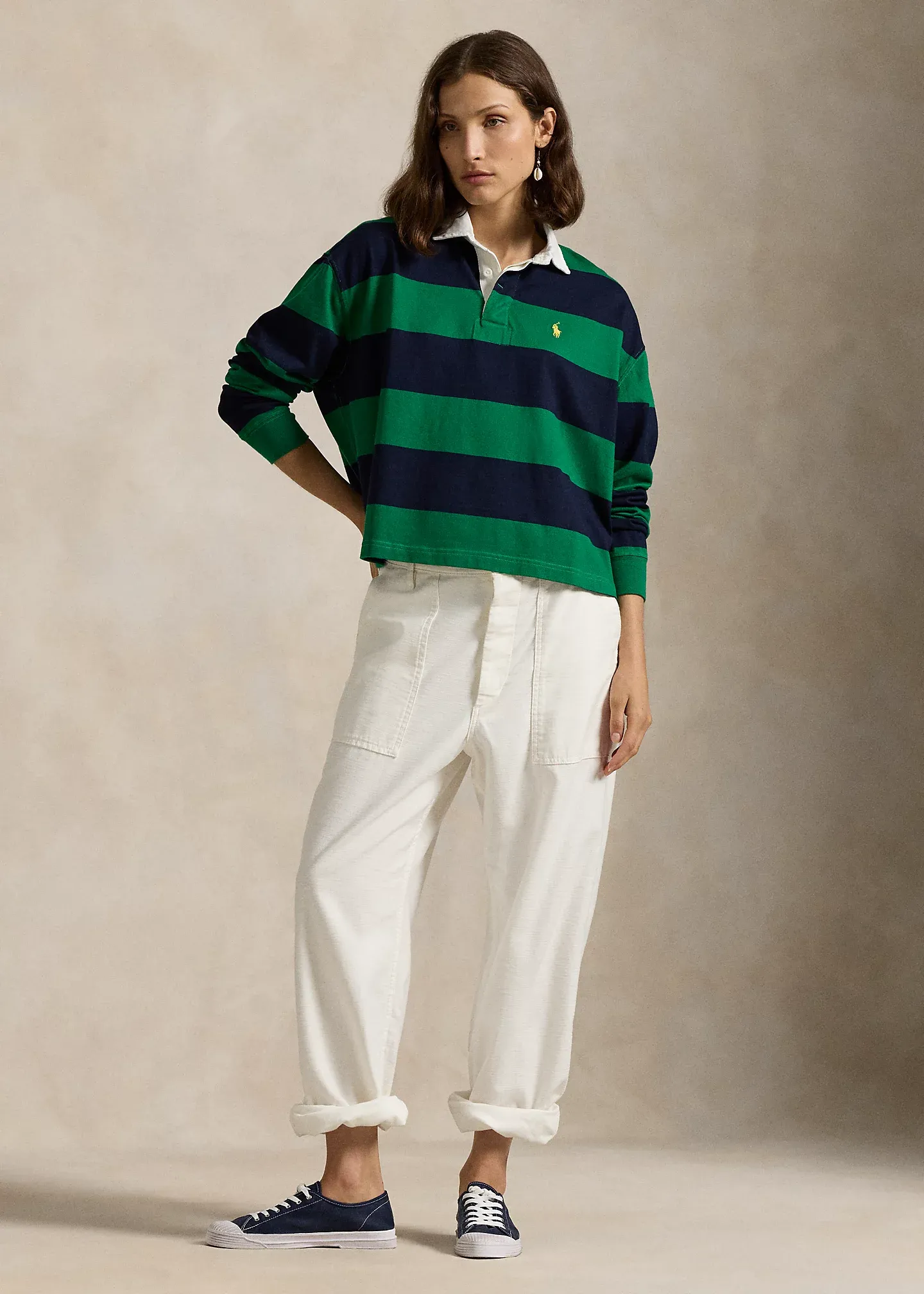 Striped Cropped Jersey Rugby Shirt