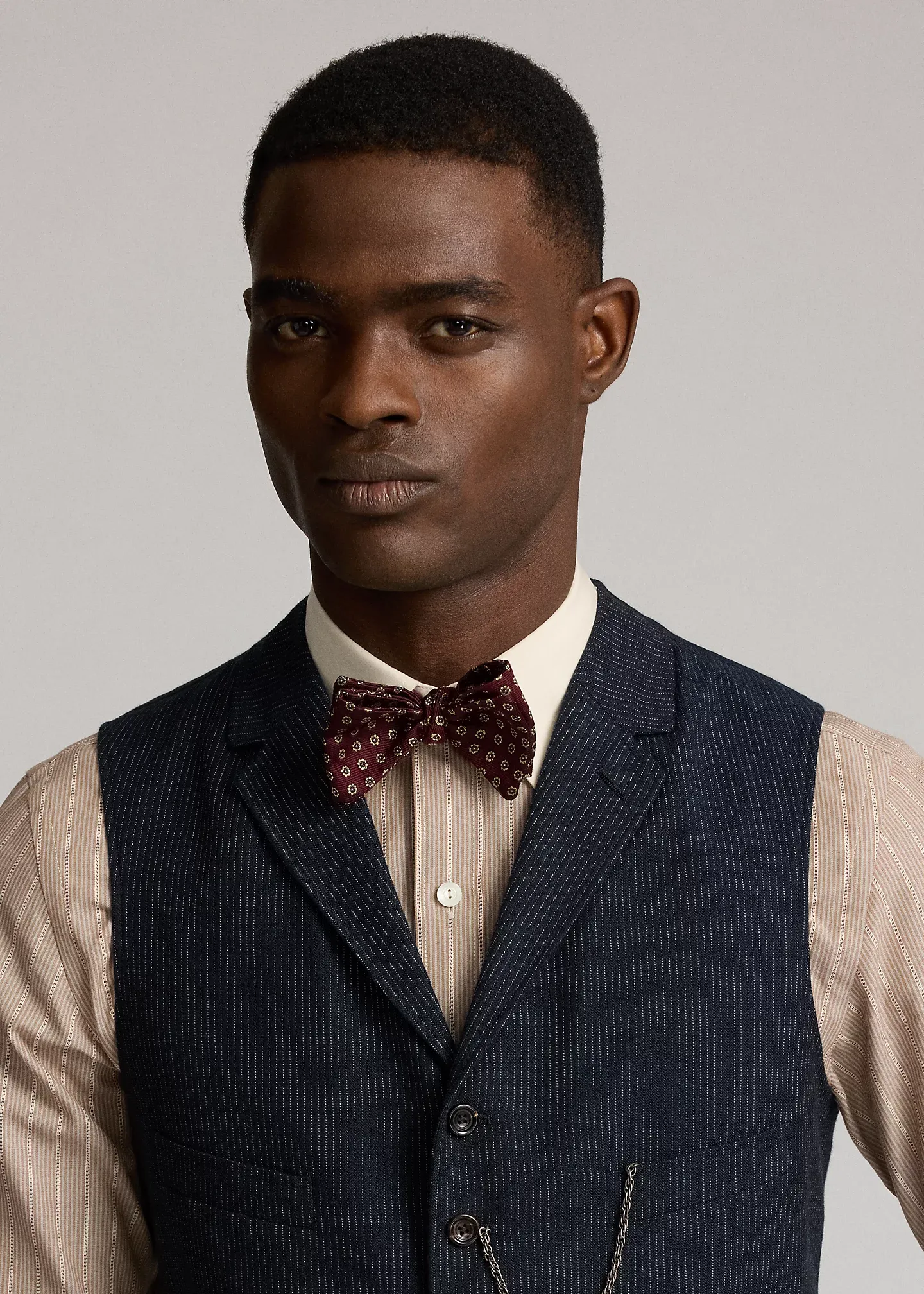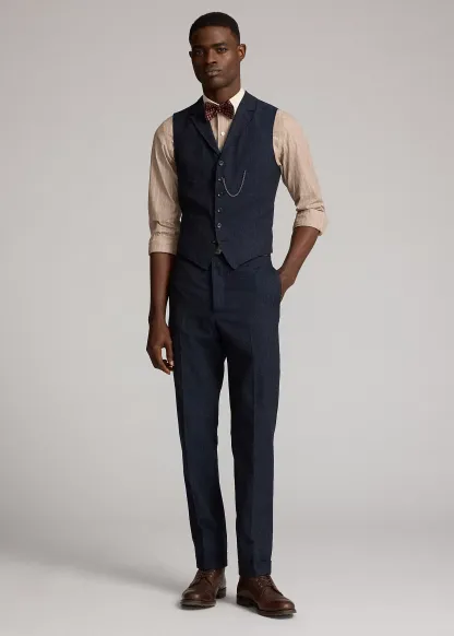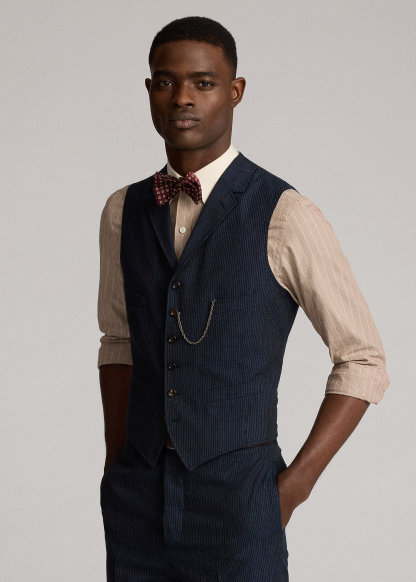 Striped Herringbone Notch-Lapel Vest