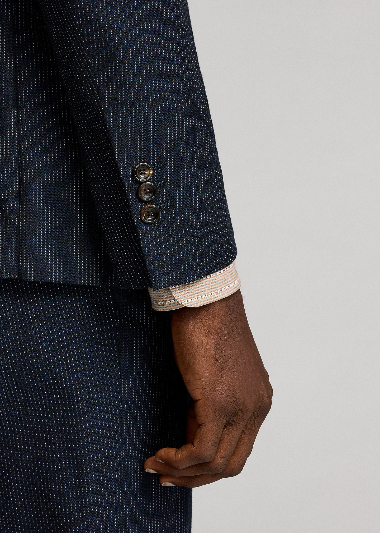 - Three-button cuffs with unfinished buttonholes ready for custom-tailoring.