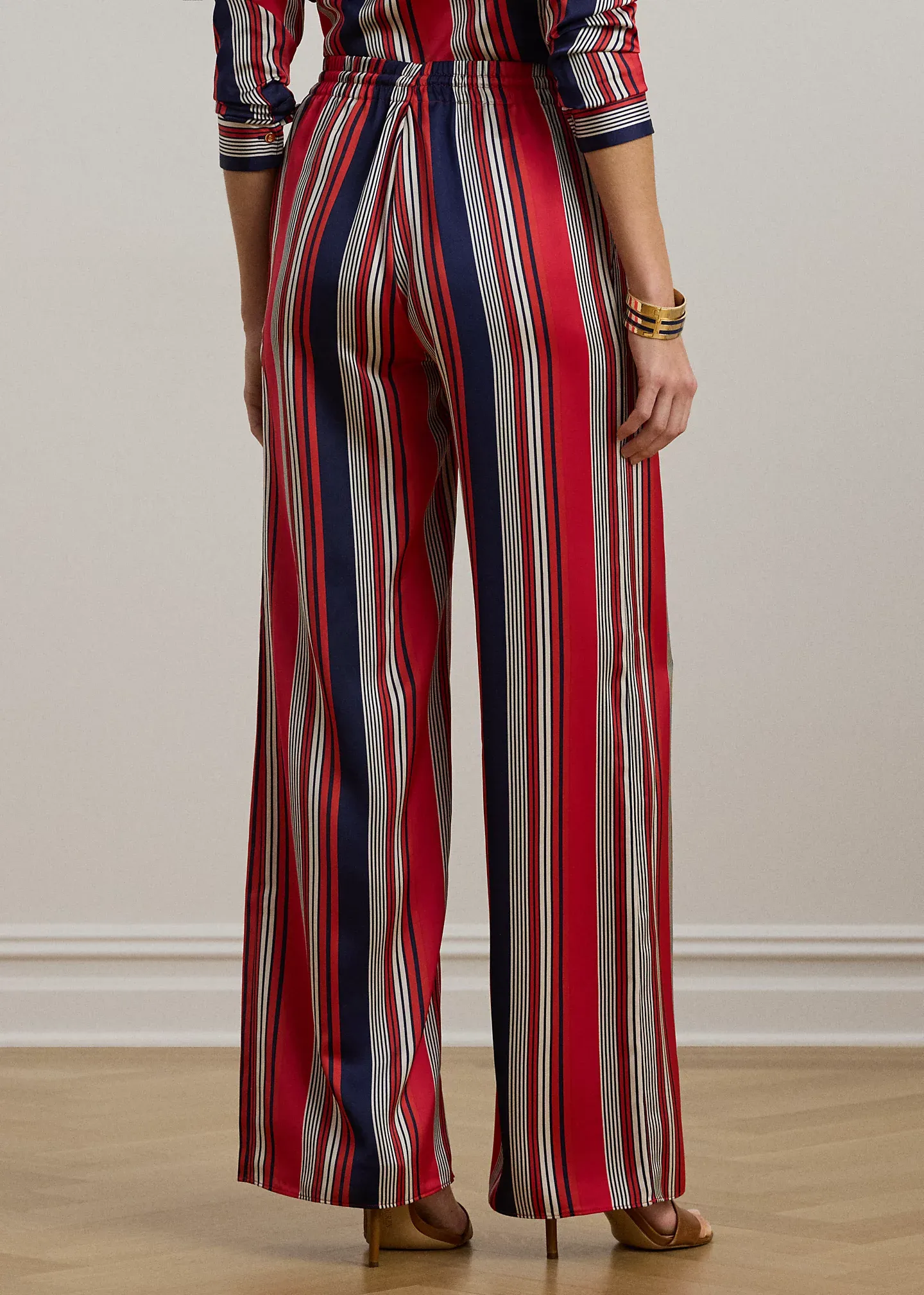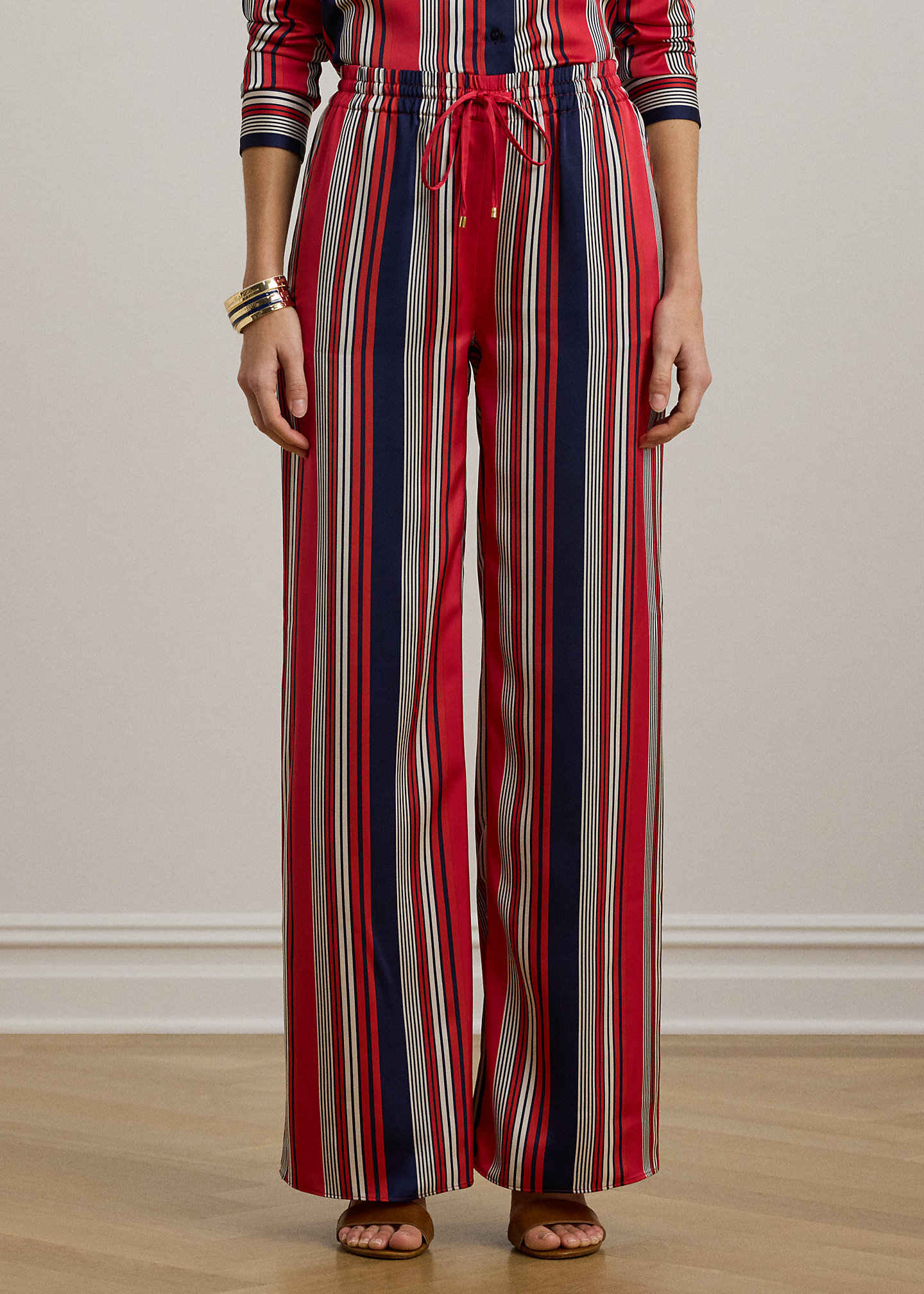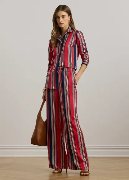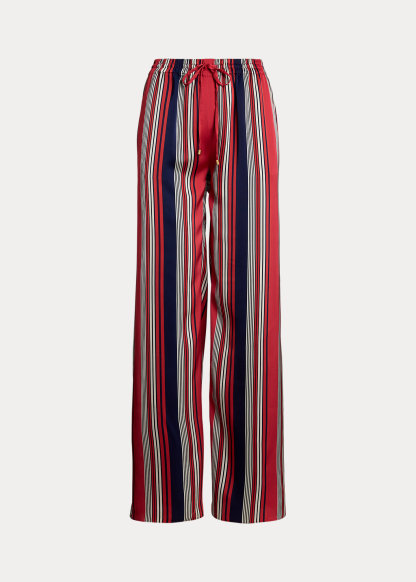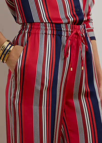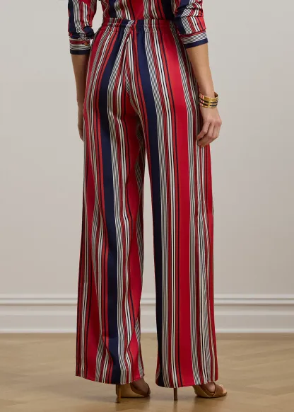 Striped Satin Charmeuse Wide-Leg Pant