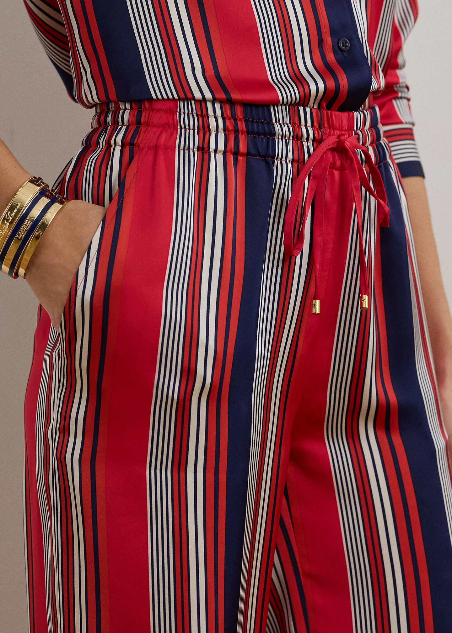 Elasticized drawcord waist. “LRL”-engraved metal cord ends.