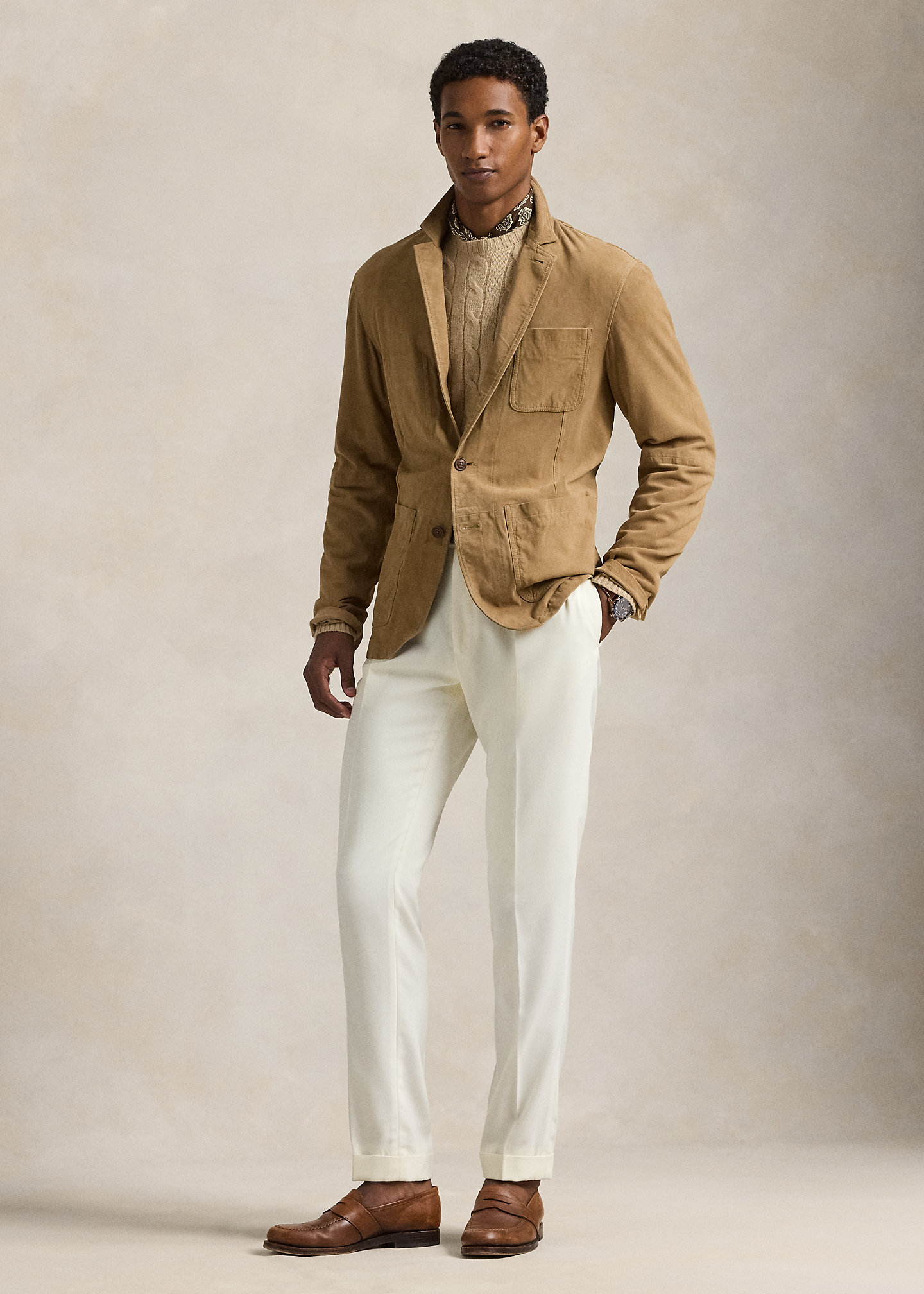 - Left chest patch pocket. Two front waist patch pockets. Interior right chest pocket.