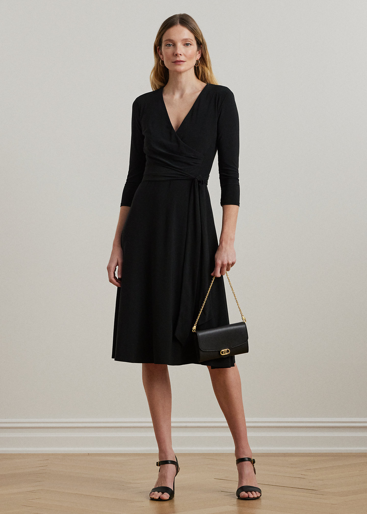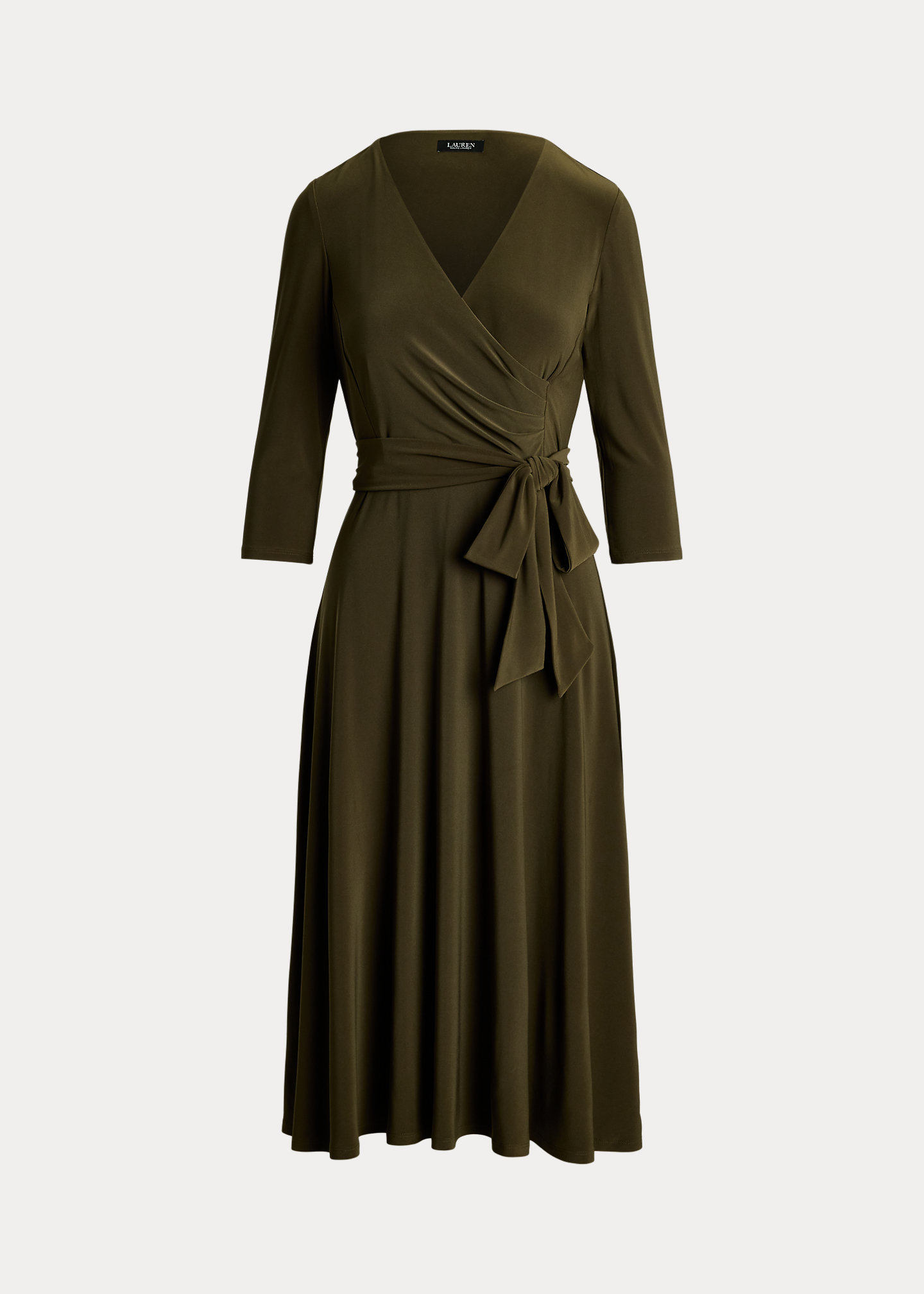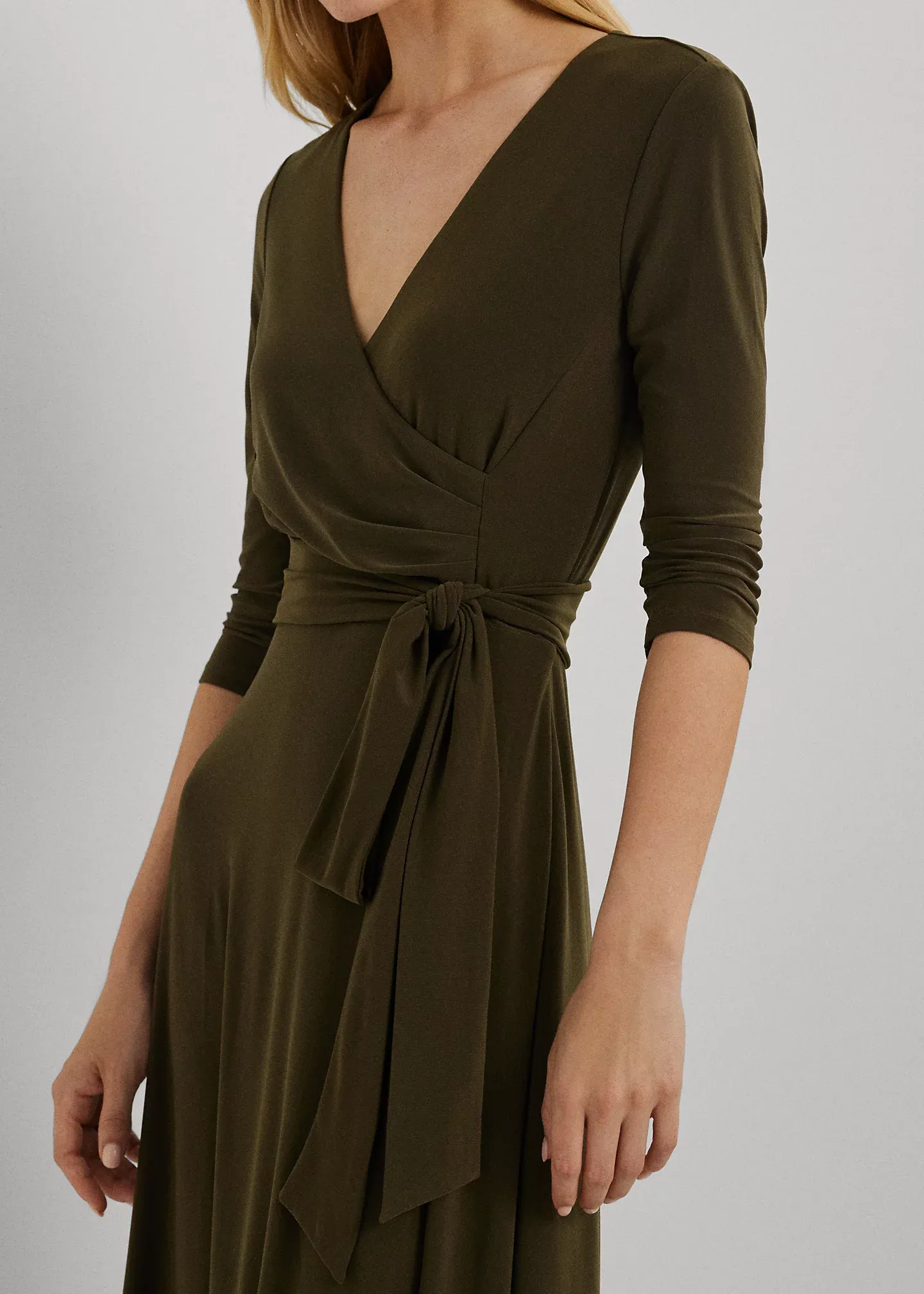 - Surplice neckline.