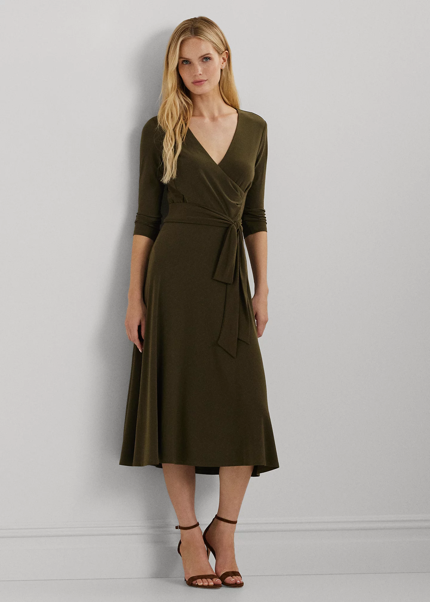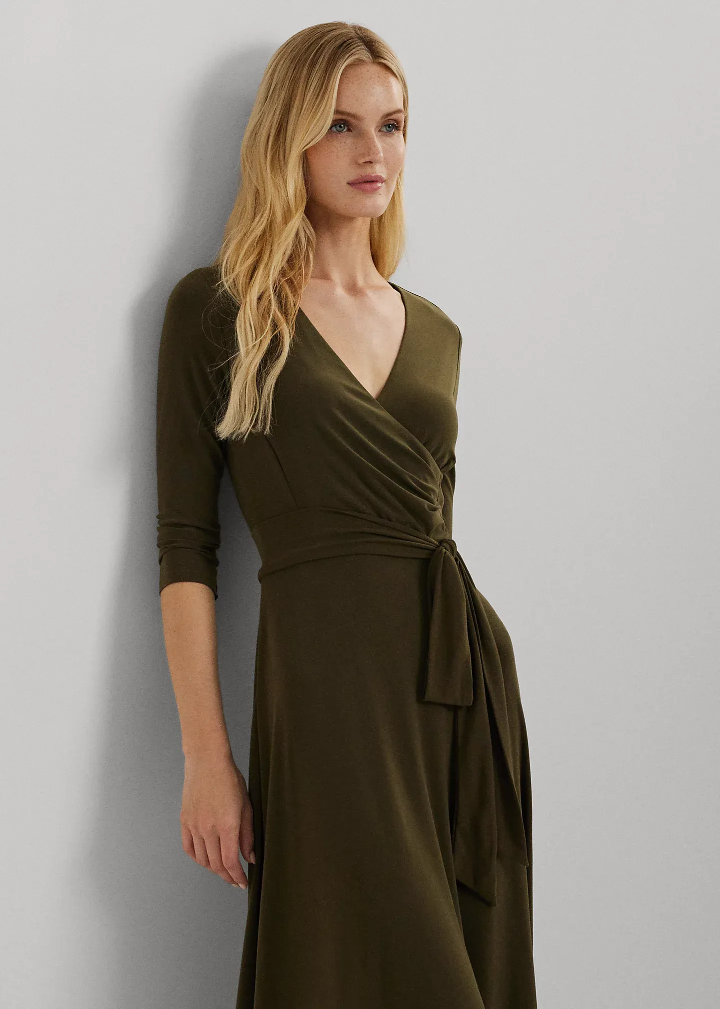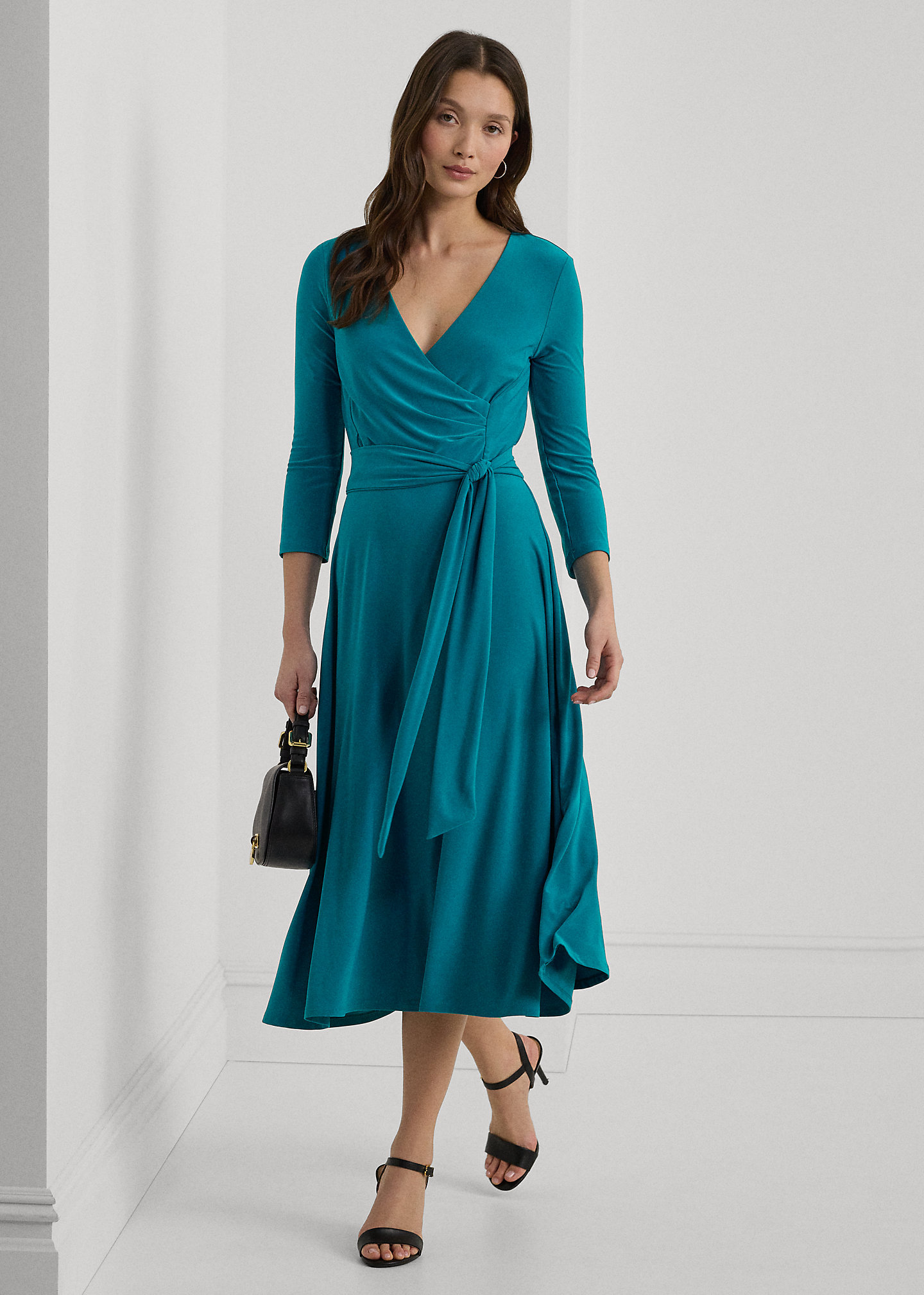 - Surplice neckline.