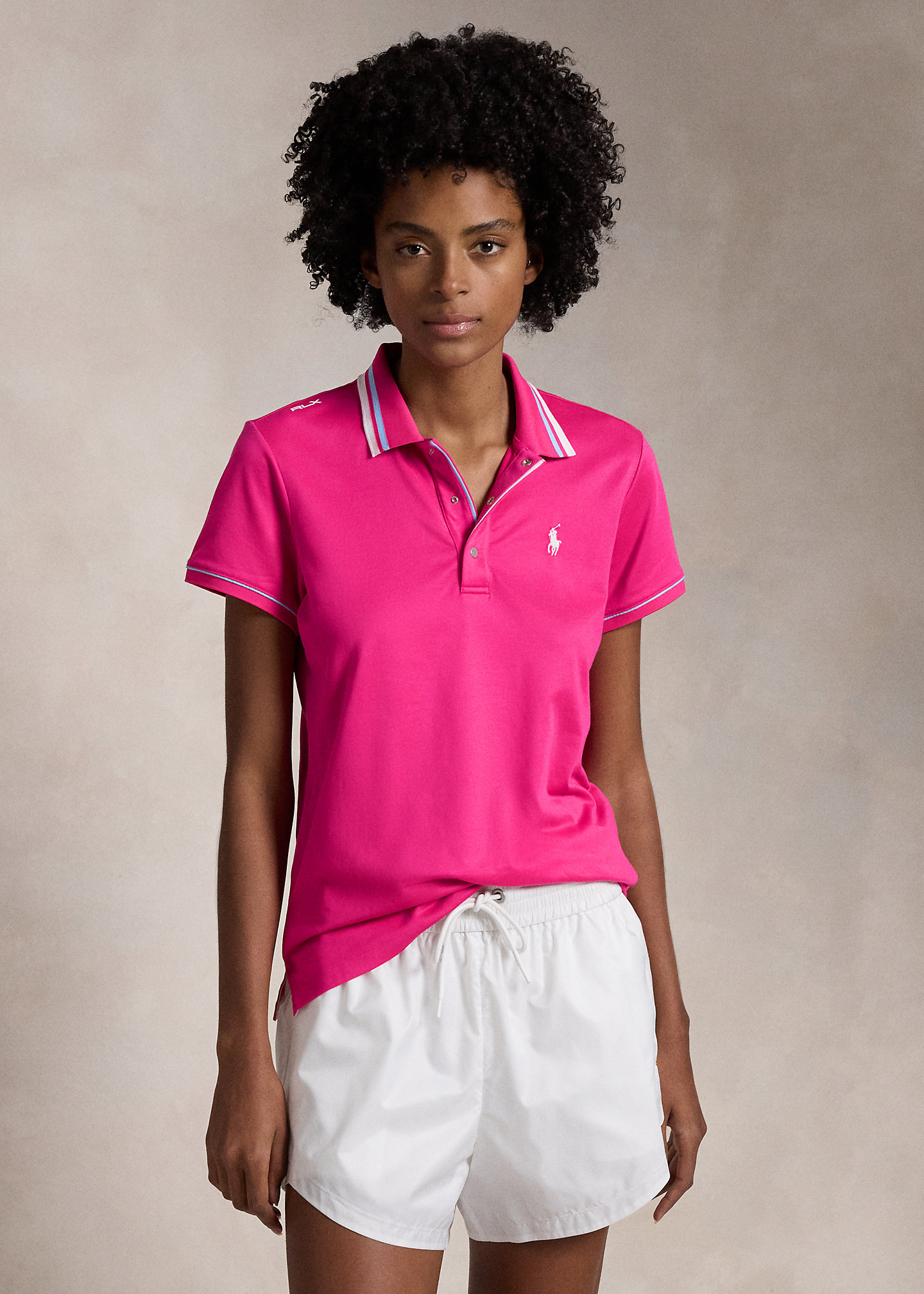 - Signature embroidered Pony at the left chest. “RLX” printed at the right shoulder and the right undercollar.