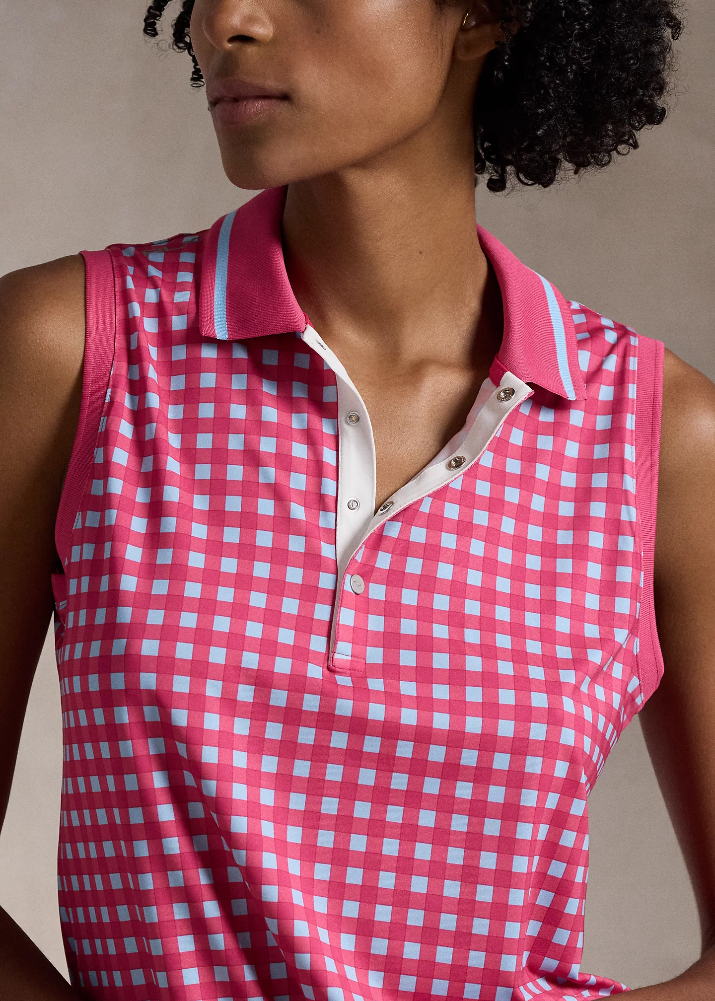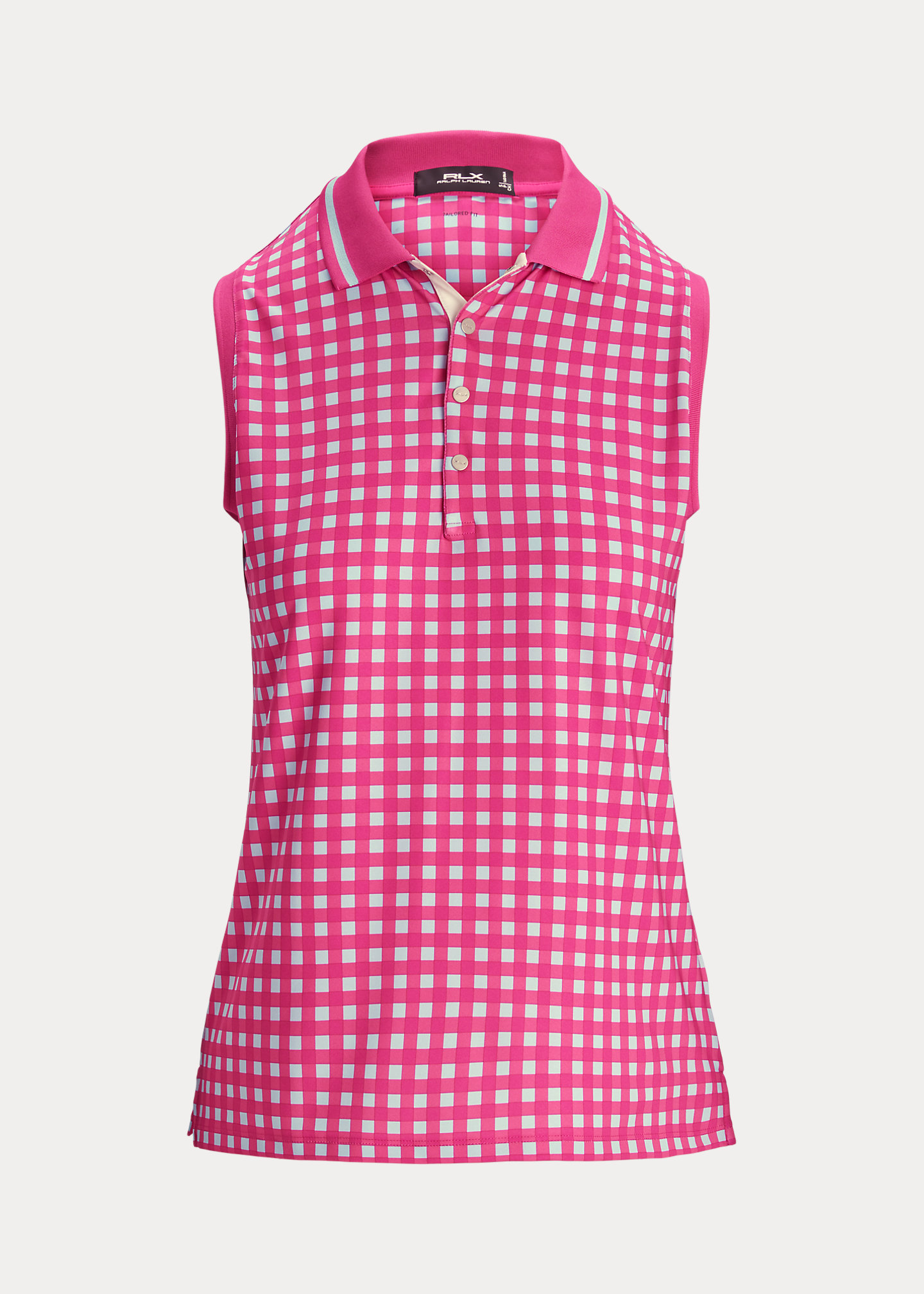 - Ribbed Polo collar with striped tipping. Four-snap placket. “RLX”-engraved metal snaps.