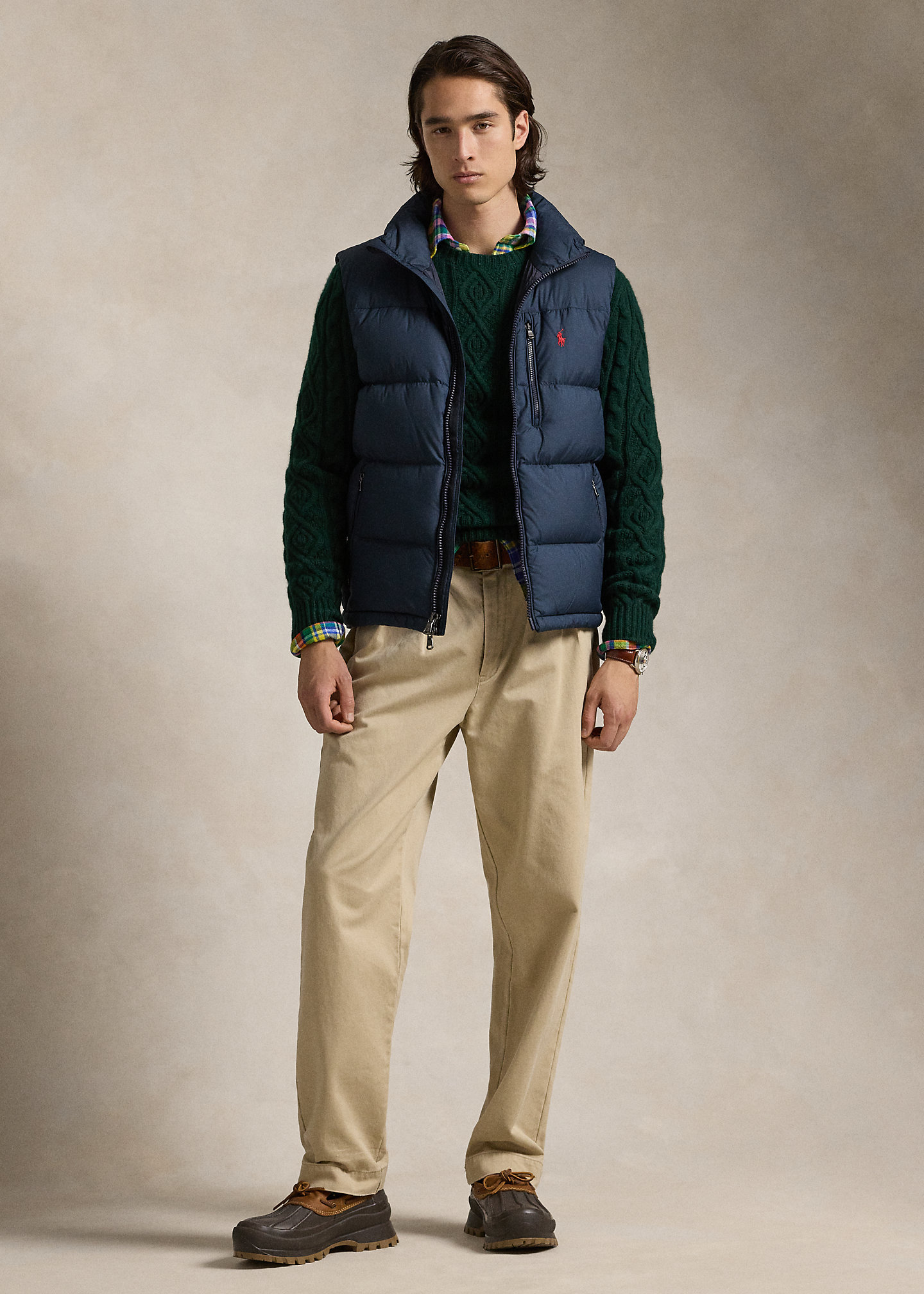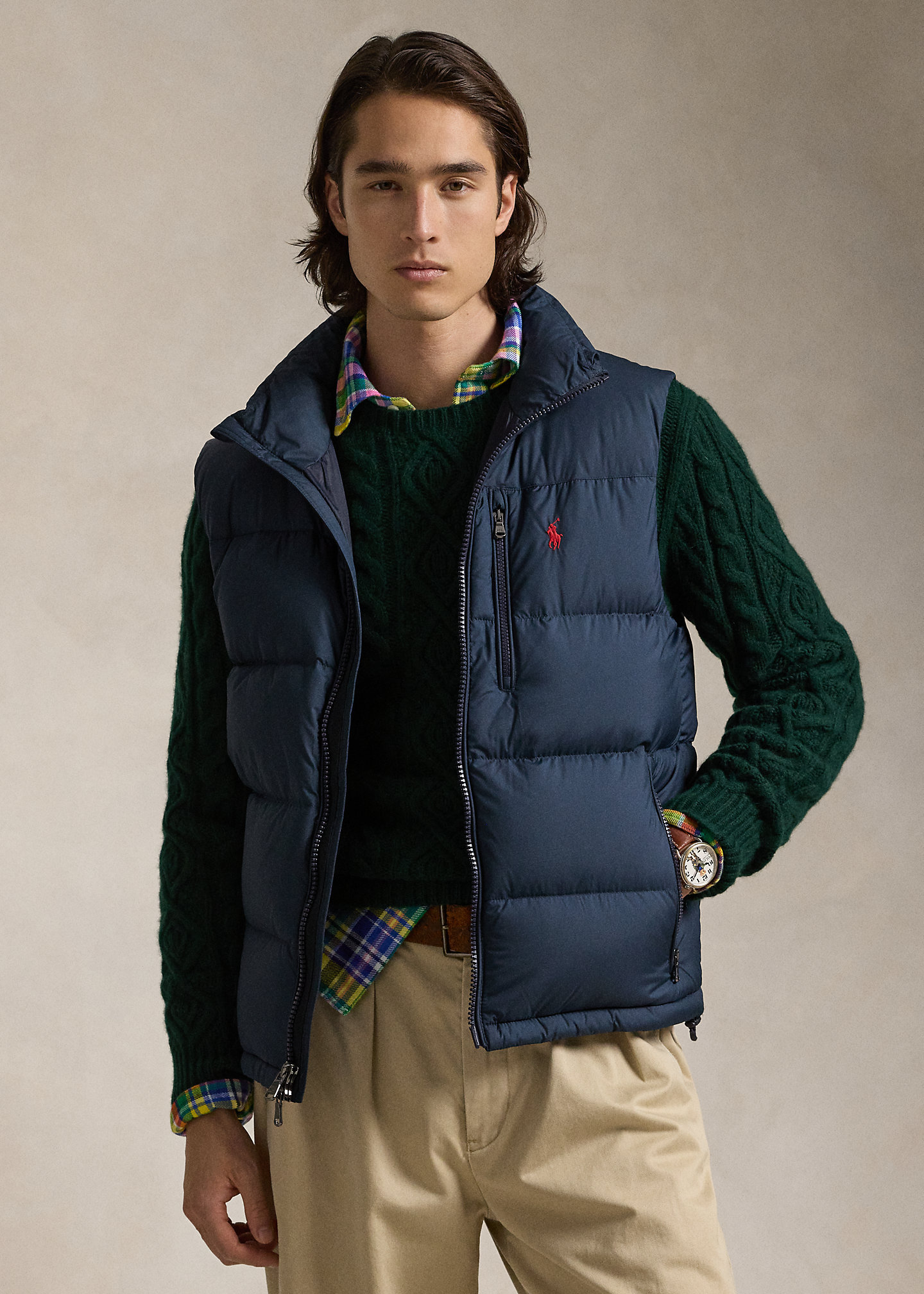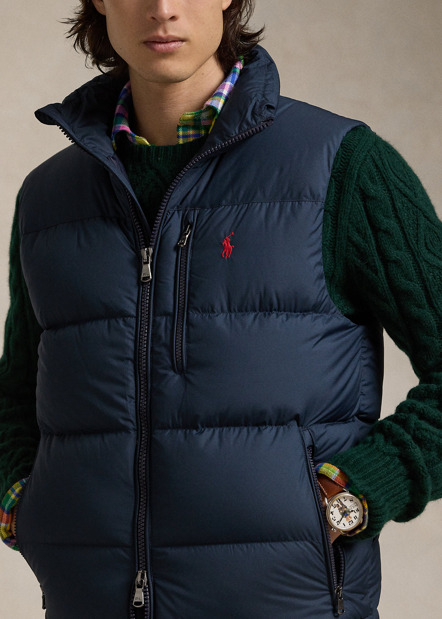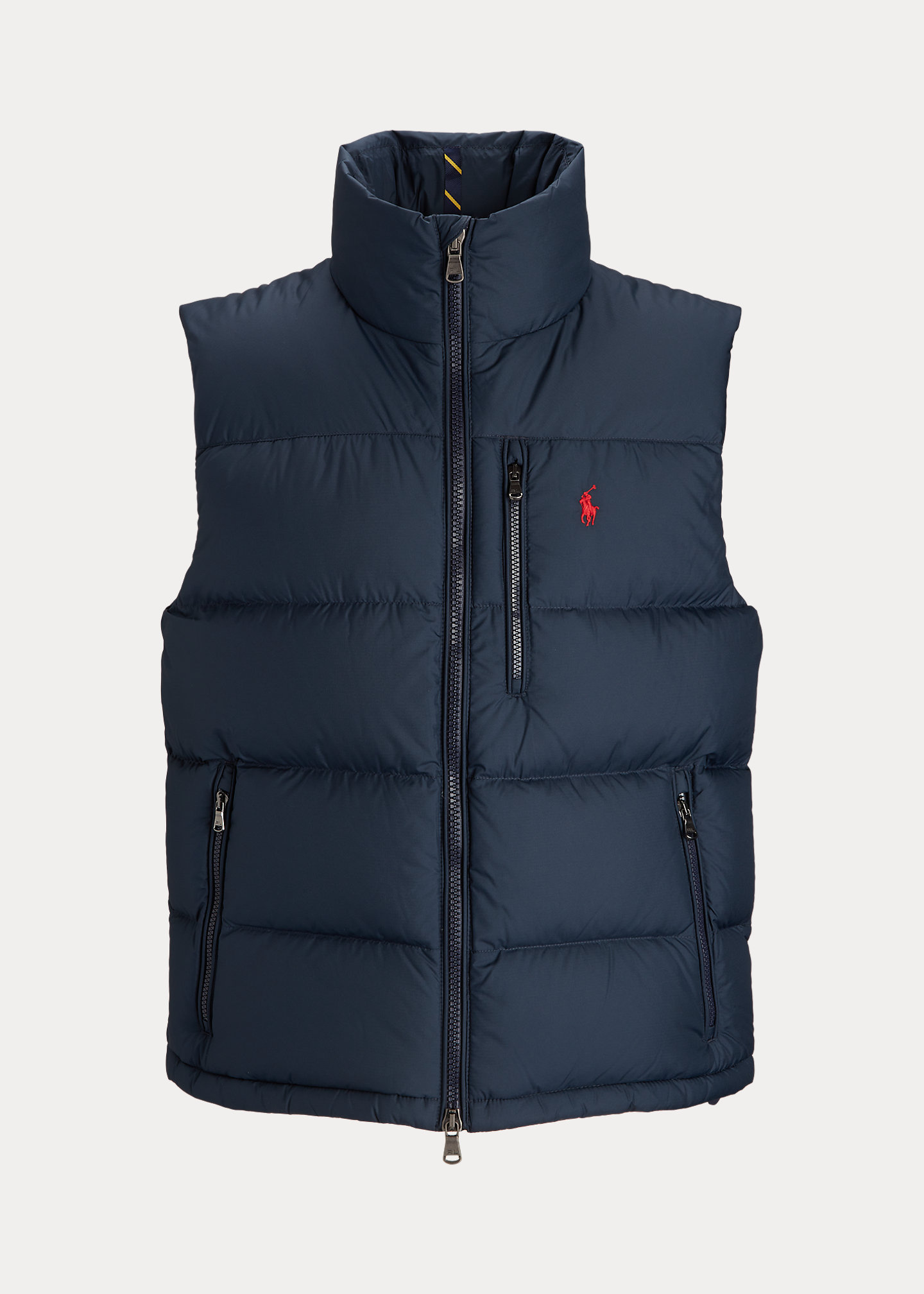 - Left chest zip pocket. Two front waist zip pockets. Interior right chest pocket. Drawcord hem. Fully lined and filled.