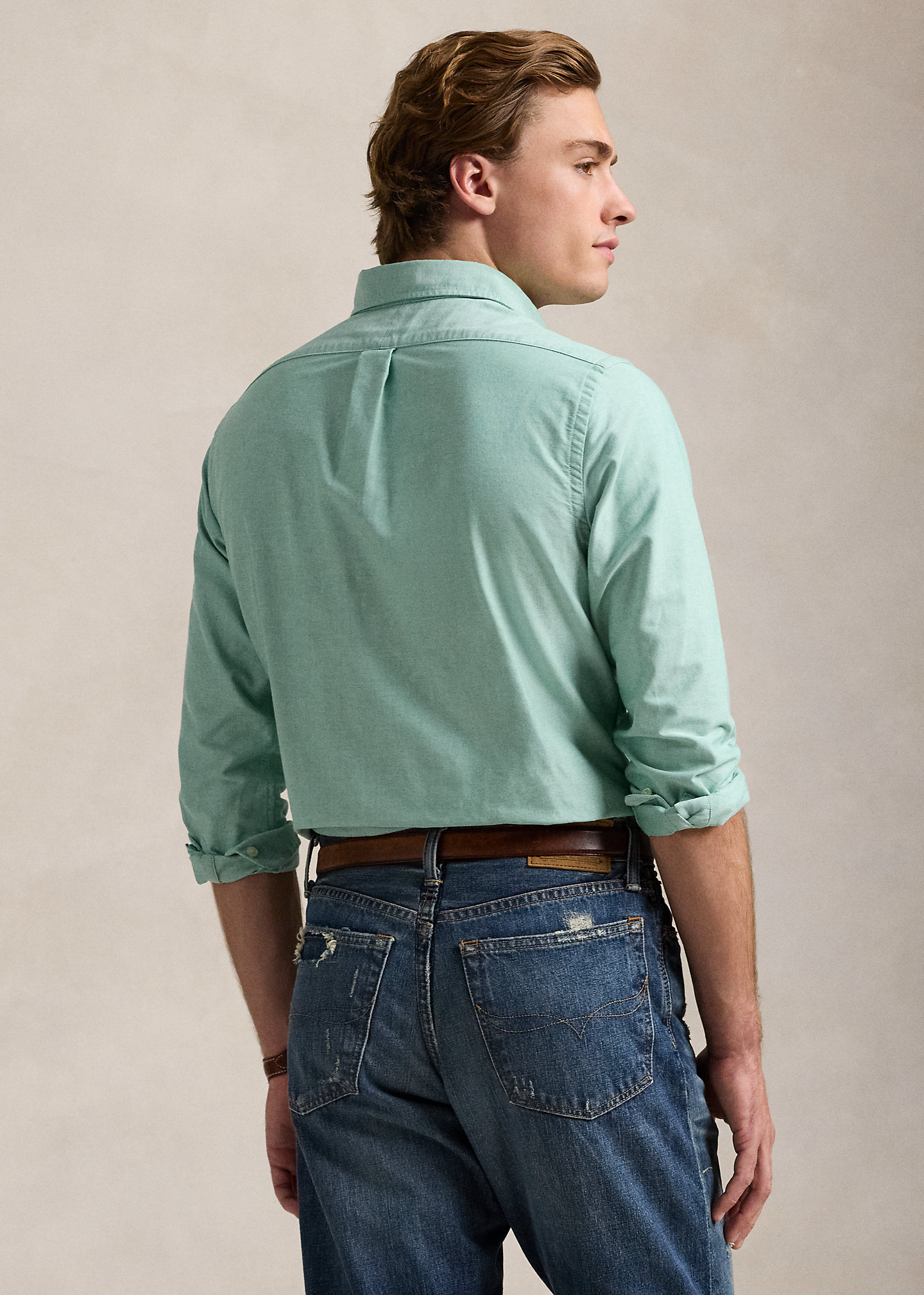 - Long sleeves with buttoned barrel cuffs.