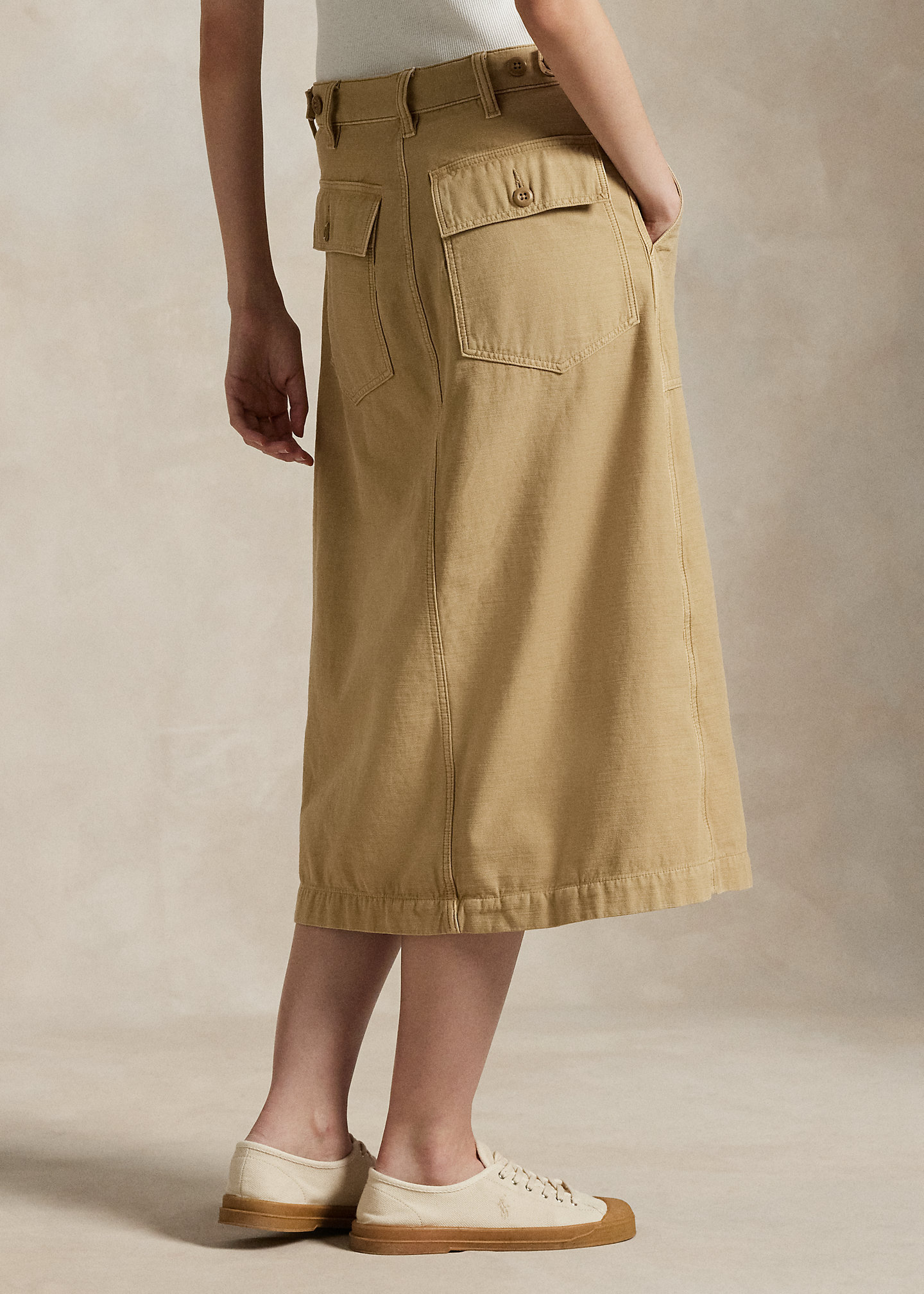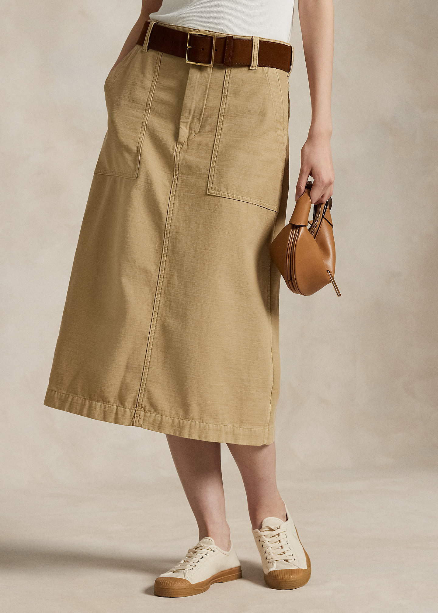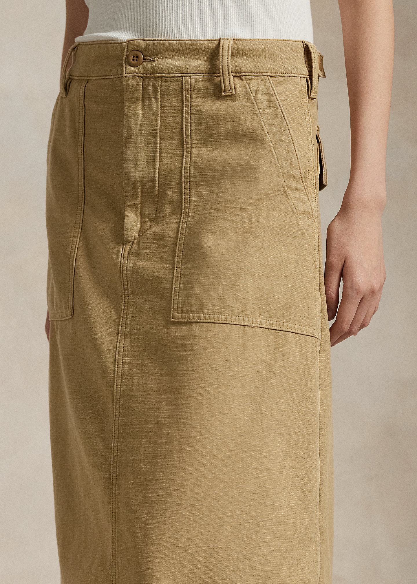 - Two front waist patch pockets. Two back waist buttoned-flap patch pockets. Unlined.