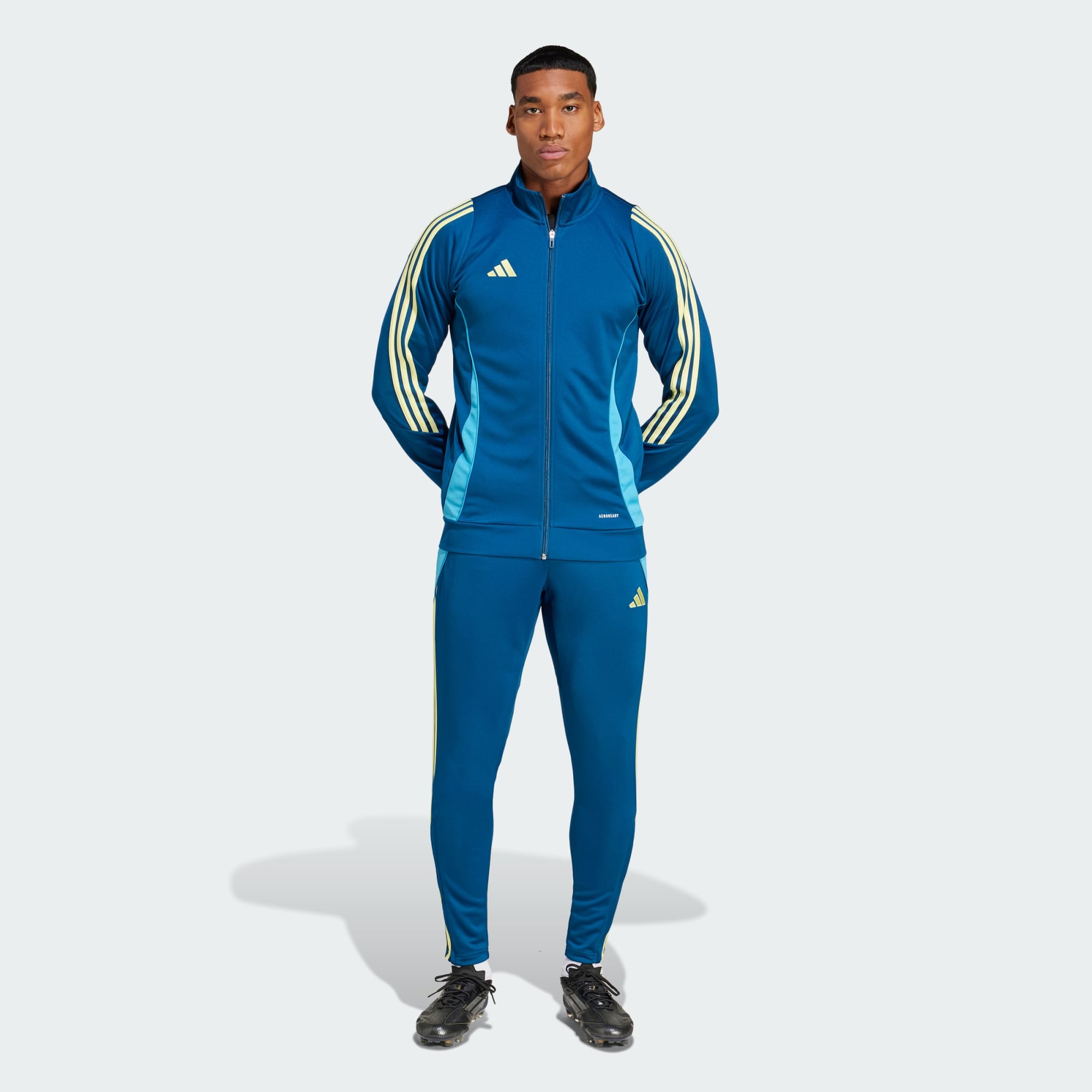 Take your training up a notch in these track pants from adidas. Built to keep you comfortable and focused during intensive drills, they're made from durable doubleknit fabric. Moisture-wicking AEROREADY keeps your legs dry for distraction-free soccer. Zip pockets secure essentials, leaving you to concentrate on improving your game.This product is made with 100% recycled materials. By reusing materials that have already been created, we help to reduce waste and our reliance on finite resources and reduce the footprint of the products we make.